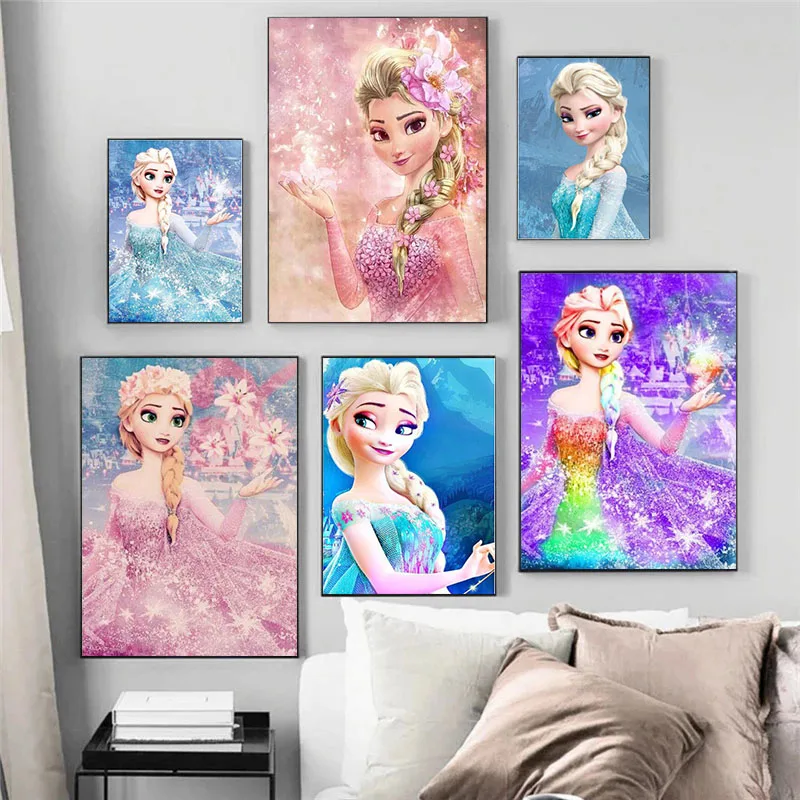 Disney Принцесса Анна Эльза Холст Картина Замороженные фигуры плака...