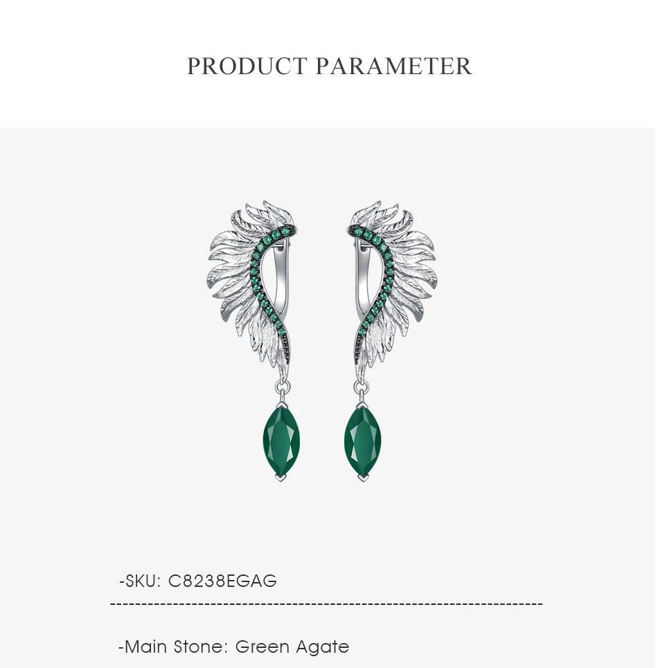 Женское кольцо из серебра 2021 пробы с зеленым агатом и перьями