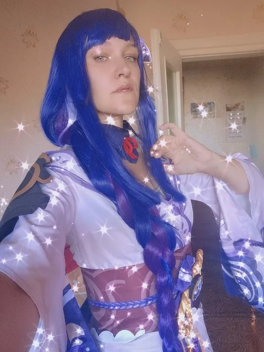 На деле парик более яркий, синий электрик, внешне так же отличается, но достаточно густой, с длинной косой, вкраплениями прядей другого цвета, как в оригинале, так что в целом достойный. Просто нуждается в доработке