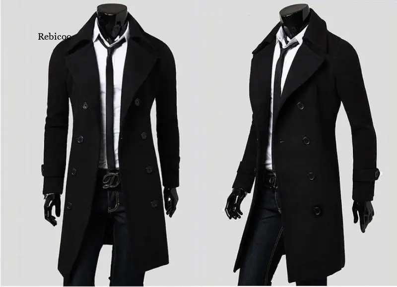 Осенне-зимнее длинное двубортное пальто мужское шерстяное пальто от...