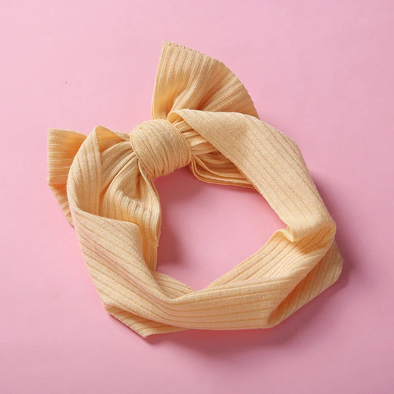 Нейлоновые повязки на голову для маленьких девочек, эластичная однотонная трикотажная полосатая тканевая повязка на голову с бантом, аксессуары для волос