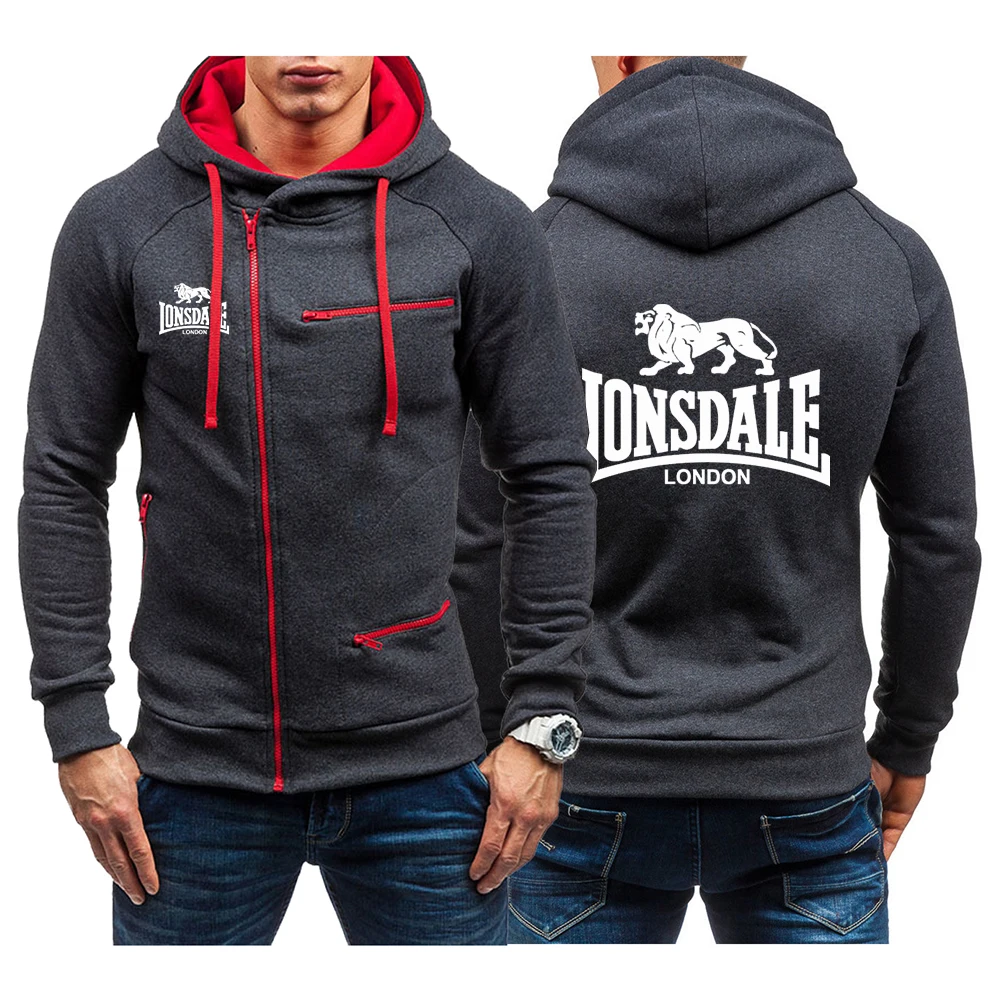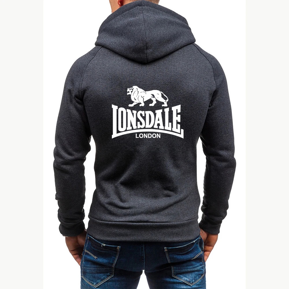 Толстовка LONSDALE пальто с логотипом 2021, мужская толстовка с принтом в стиле High Street, уличные спортивные толстовки на молнии для бега и тренировок