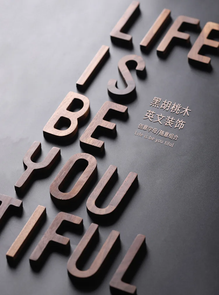 Декоративные буквы из черного ореха в скандинавском стиле, комбинир...