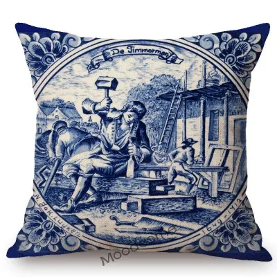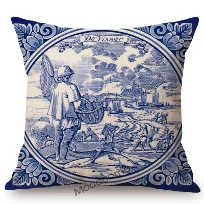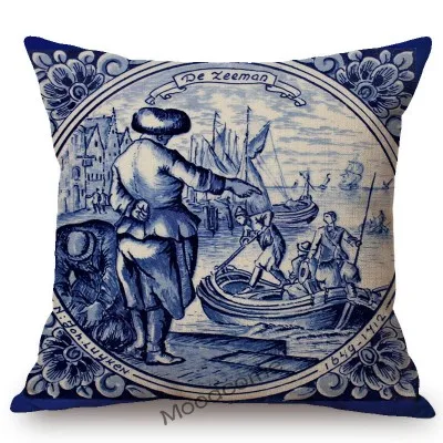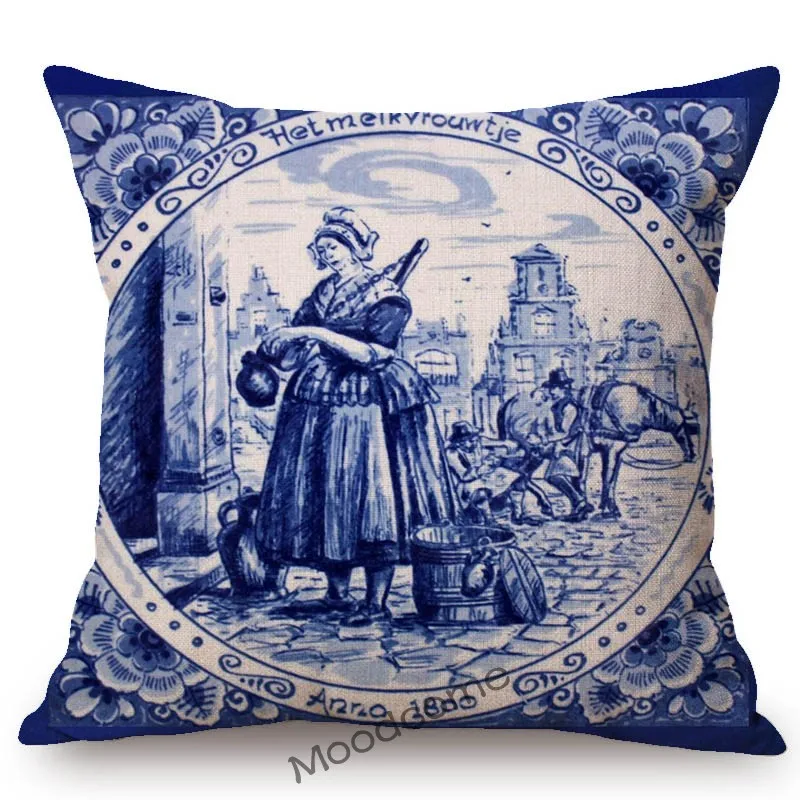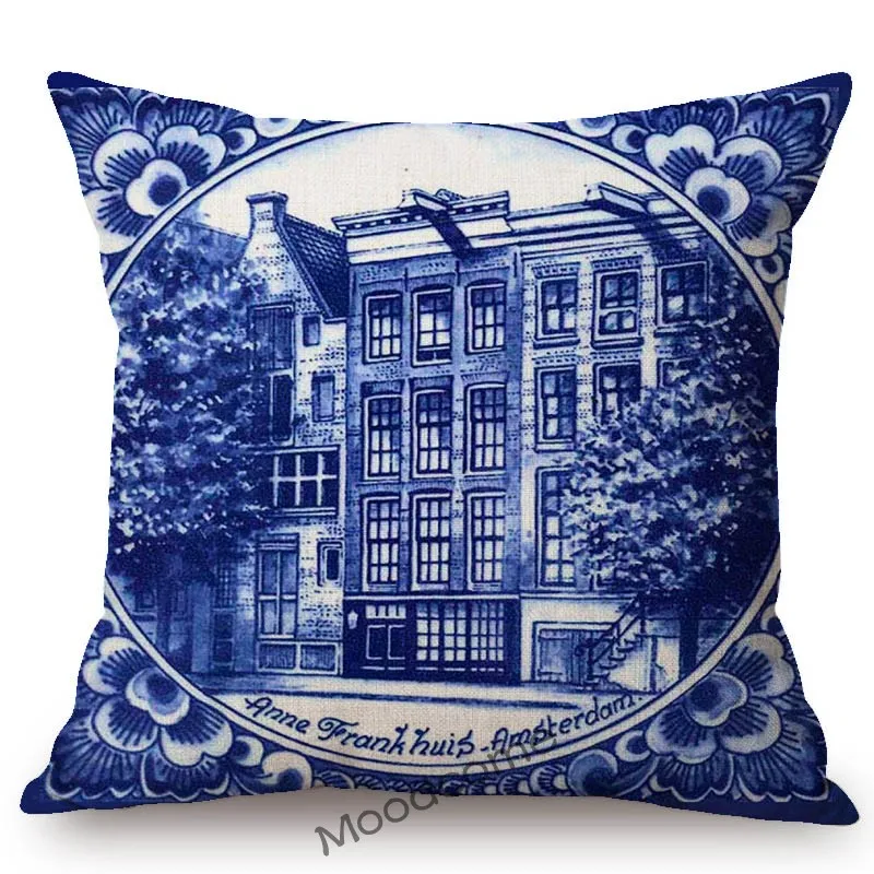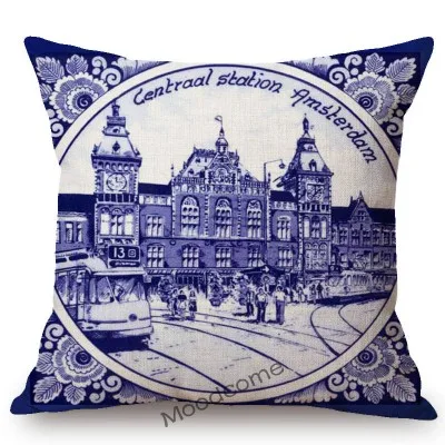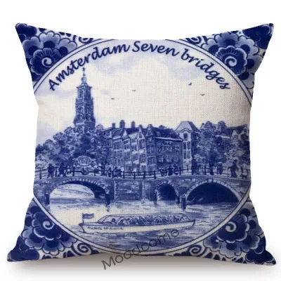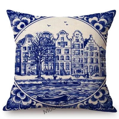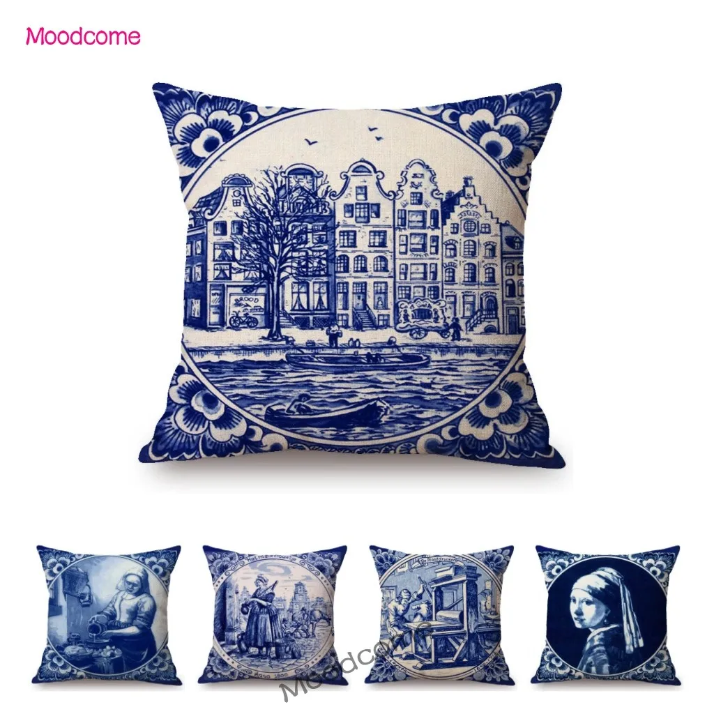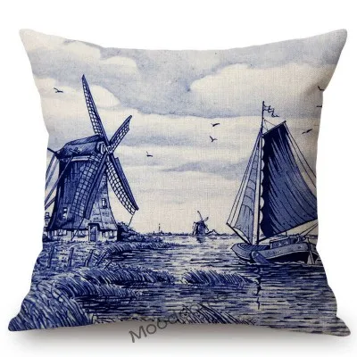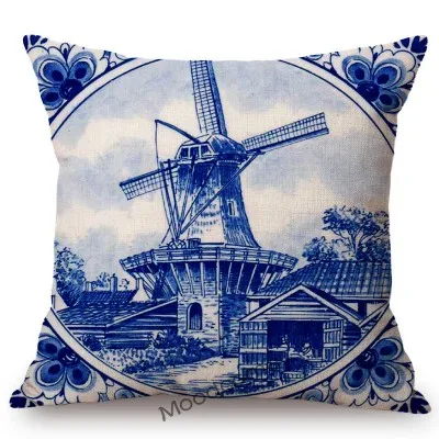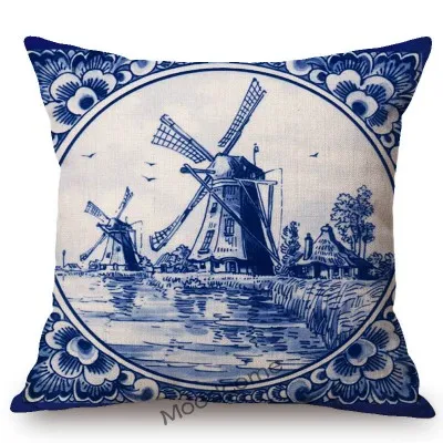 Роскошный Сувенирный чехол для подушки Delft, голубой, голландский классический дизайн, украшение для дома, мельница, мельница, чехол для дивана