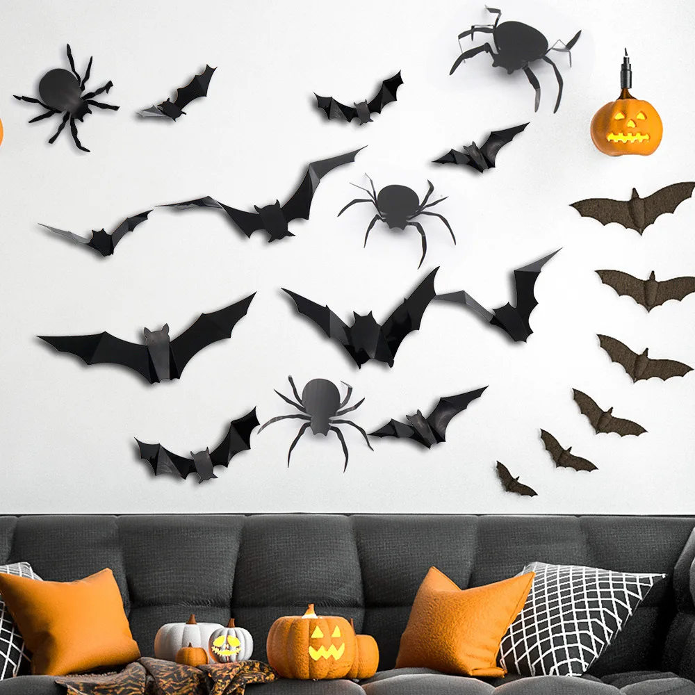 2448 шт. украшения на Хэллоуин 3D черная ПВХ летучая мышь для вечерние эллоуина DIY Декор бар комната искусственная вечевечерние страшные декорации реквизит Настенная Наклейка