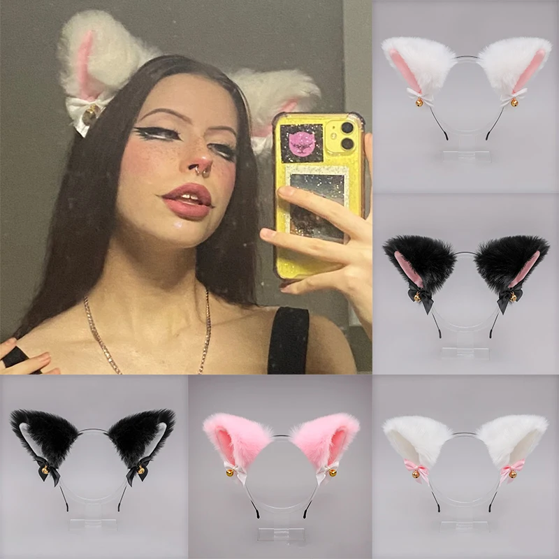 Повязка на голову с кошачьими ушками, Сексуальная повязка на голову из лисьего меха с колокольчиками, головной убор для косплея, аксессуары для волос для женщин и девочек, подарок на Хэллоуин