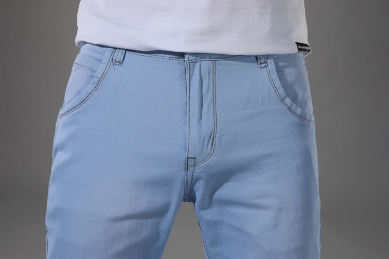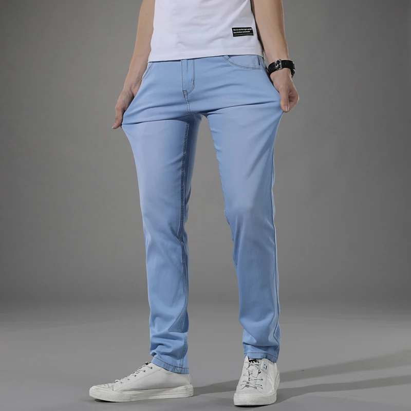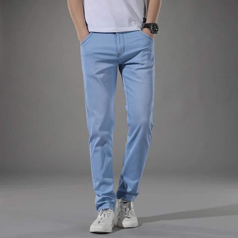 Джинсы мужские, эластичные, светло-голубые, повседневные, классические
