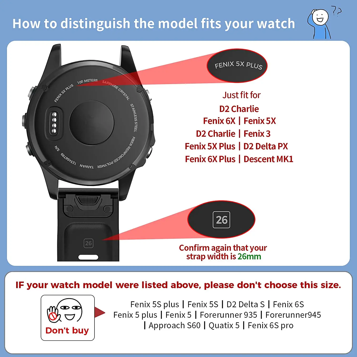 Спортивный силиконовый ремешок для часов 26 ммПодходит для Fenix 5X Plus, Fenix 5X, Fenix 6X,Fenix 6X Pro,Fenix 3, Fenix 3Hr, спуск MK,D2 Delta PX,D2 Чарли умные часы.