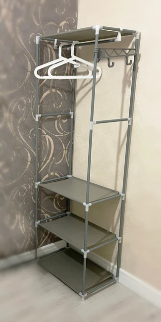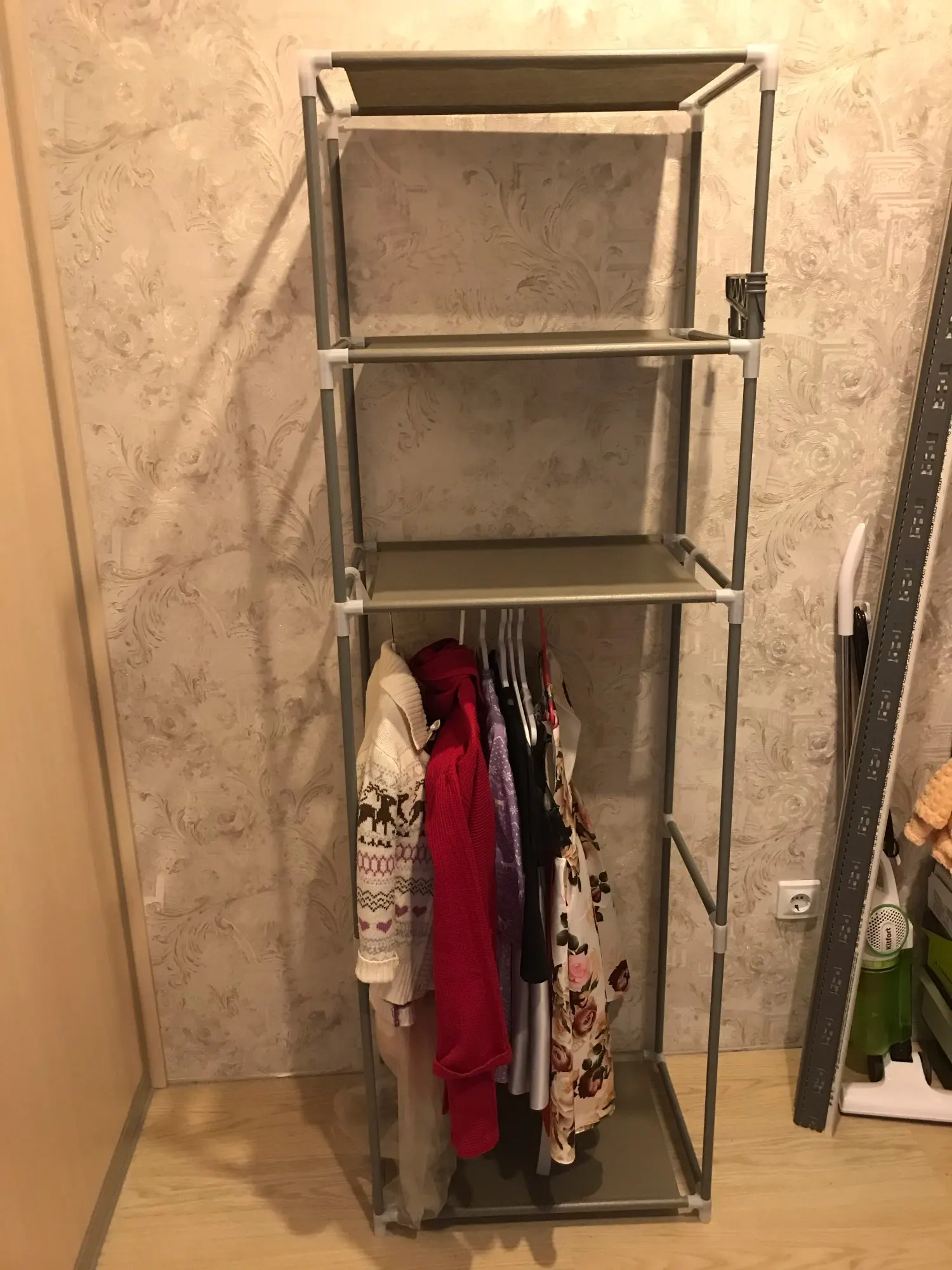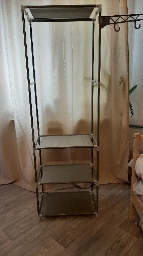 годится для легкой одежды.конструкция не так прочна как кажется со слов продавца.можно считать плюсом возможность располржить полки по своему усмотрению