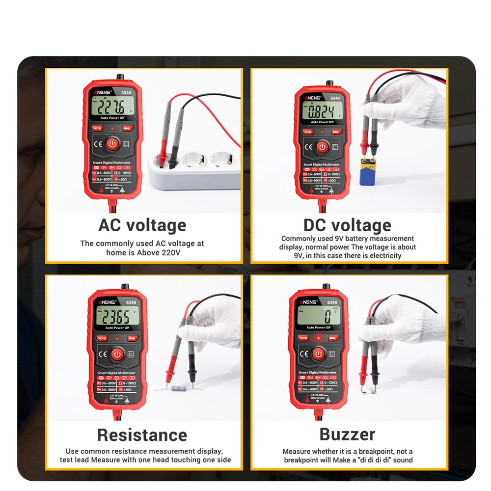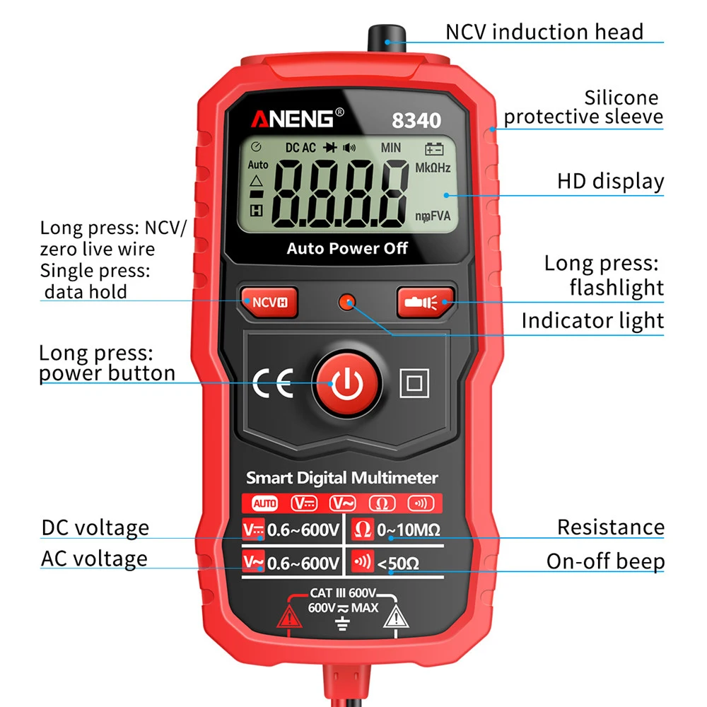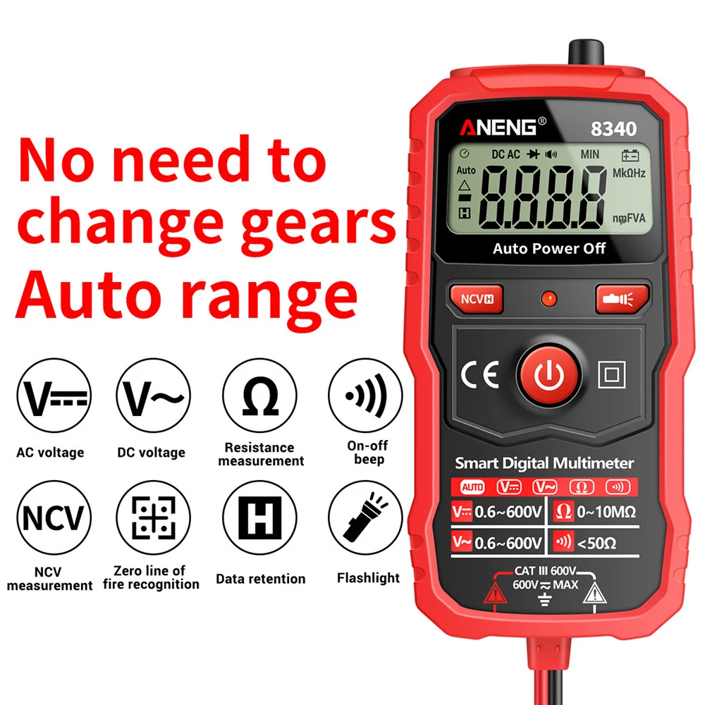 Цифровой мультиметр, 8340 мин, умный автоматический диапазон, 600 В, 10 А, тестер, Ом, Гц, емкость, истинное среднеквадратичное значение, AC, DC, DMM, мультитестер