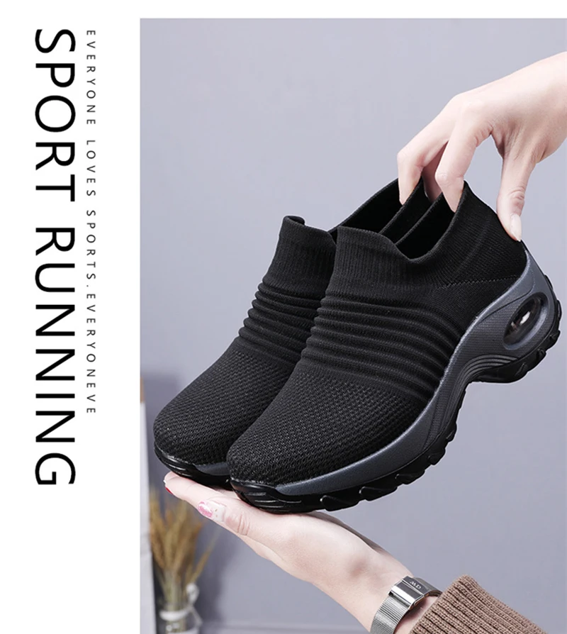 Кроссовки-носки женские на толстой платформе, дышащие спортивные, для ходьбы, увеличивающие рост 5 см