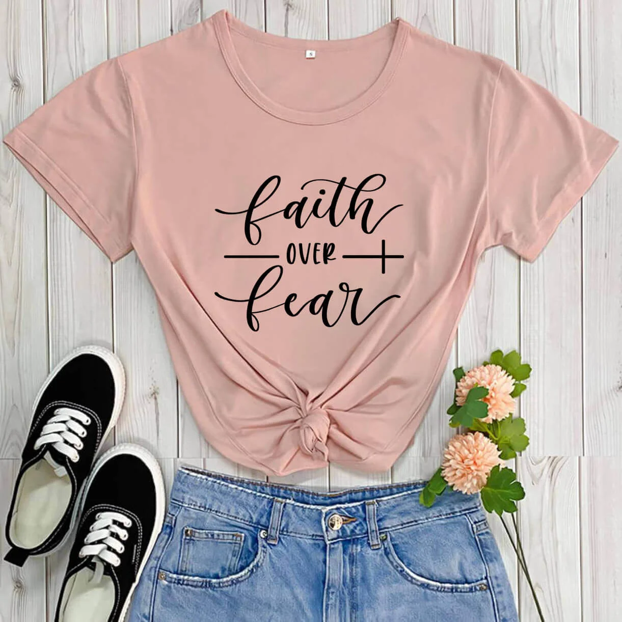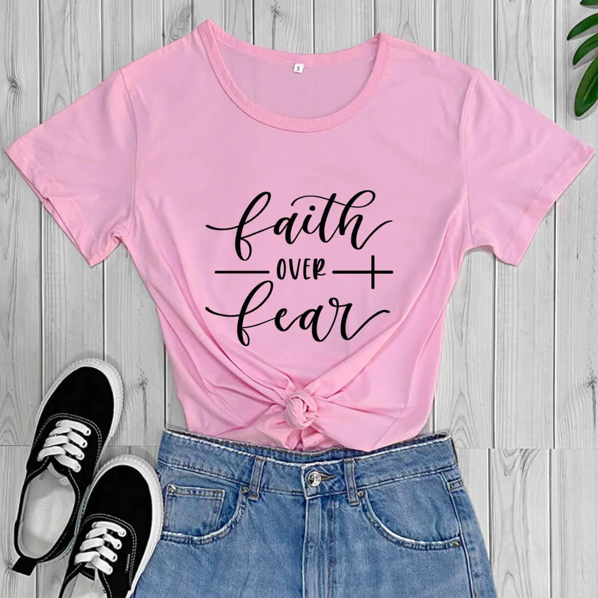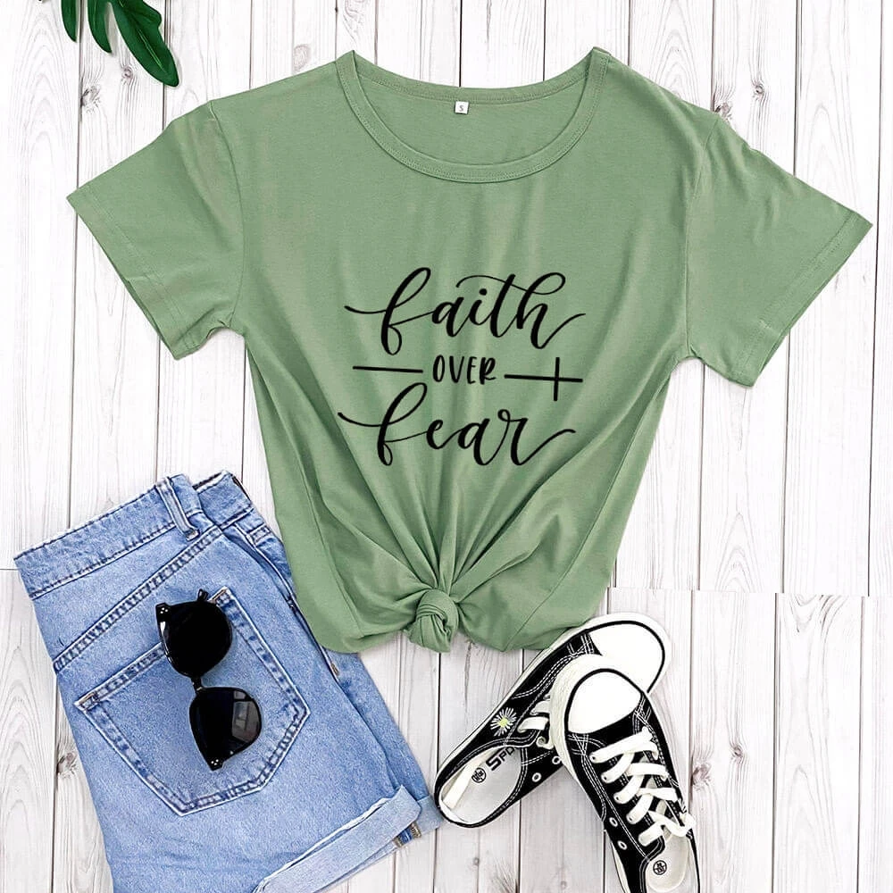 Новое поступление, Повседневная забавная футболка с надписью Faith Over страх христианские, TX5735