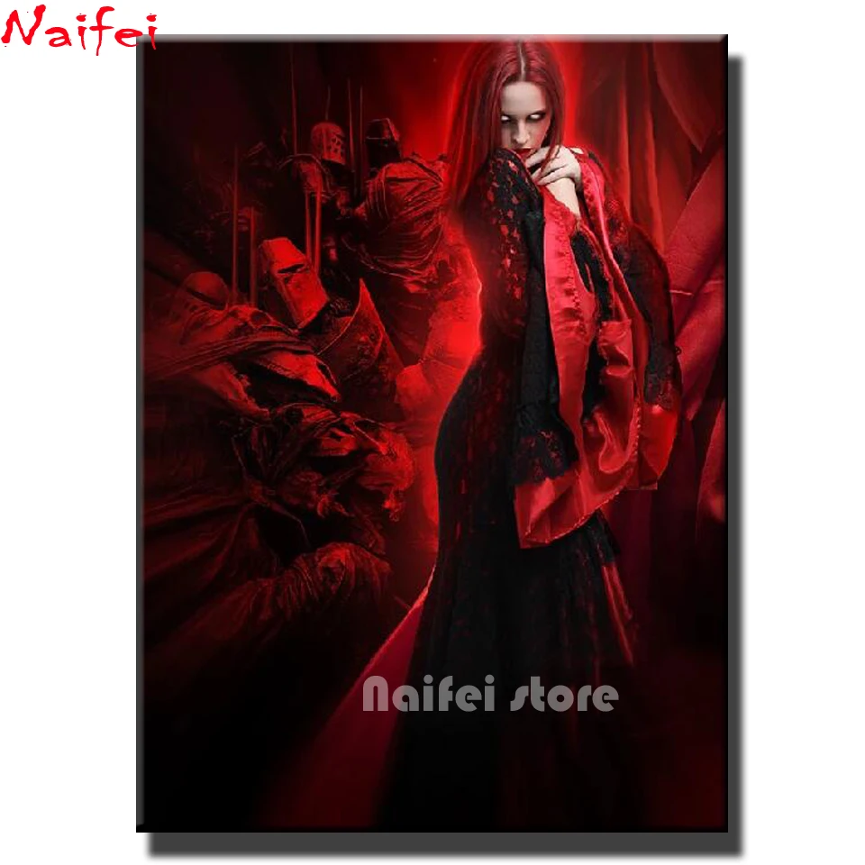Алмазная картина полностью квадратная круглая дрель вампир женщина 5D Вышивка готический крест тьма леди украшение дома искусство