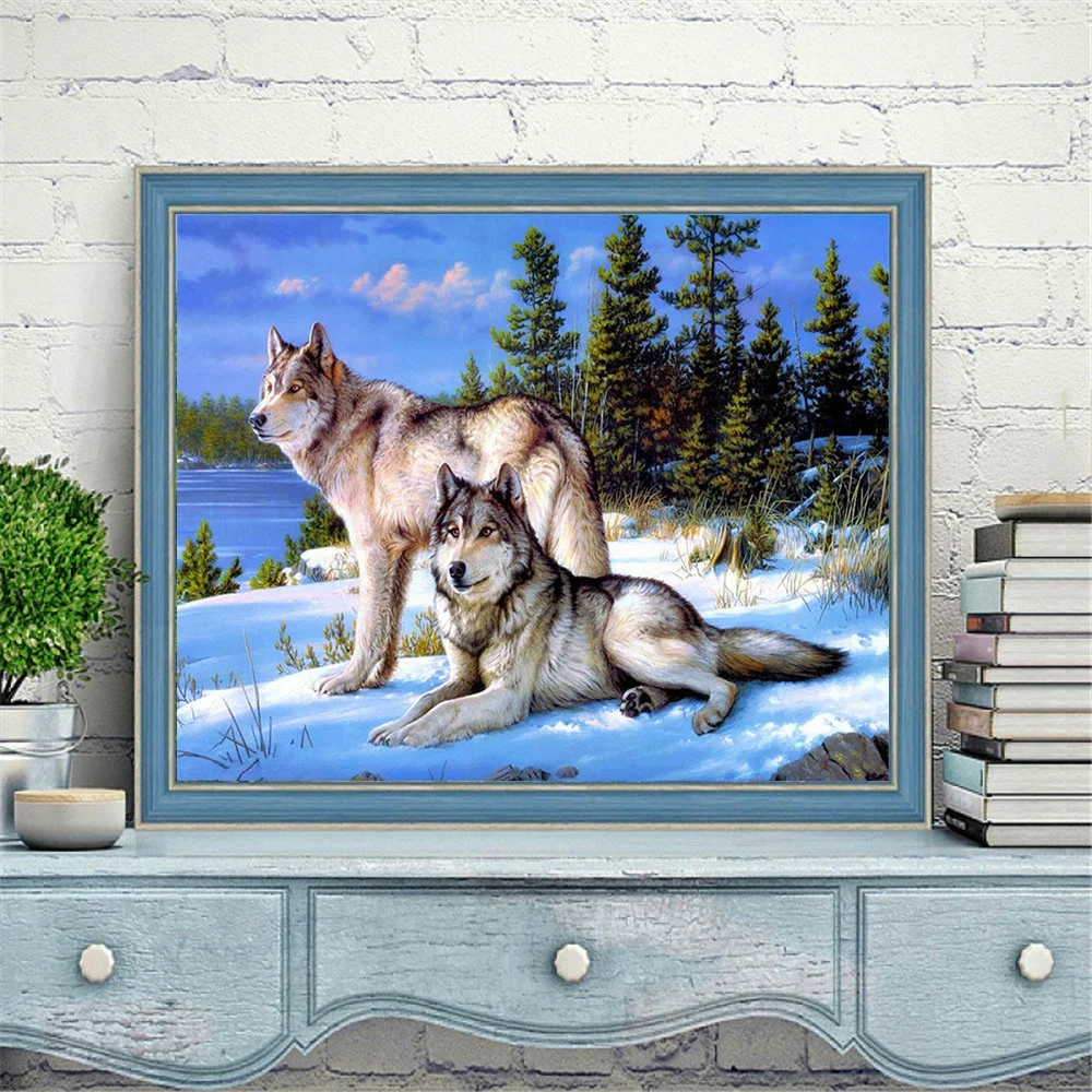 Алмазная 5d картина сделай сам Huacan, картина волк с полными квадратнымикруглыми стразами, вышивка с бусинами, домашний декор с животными