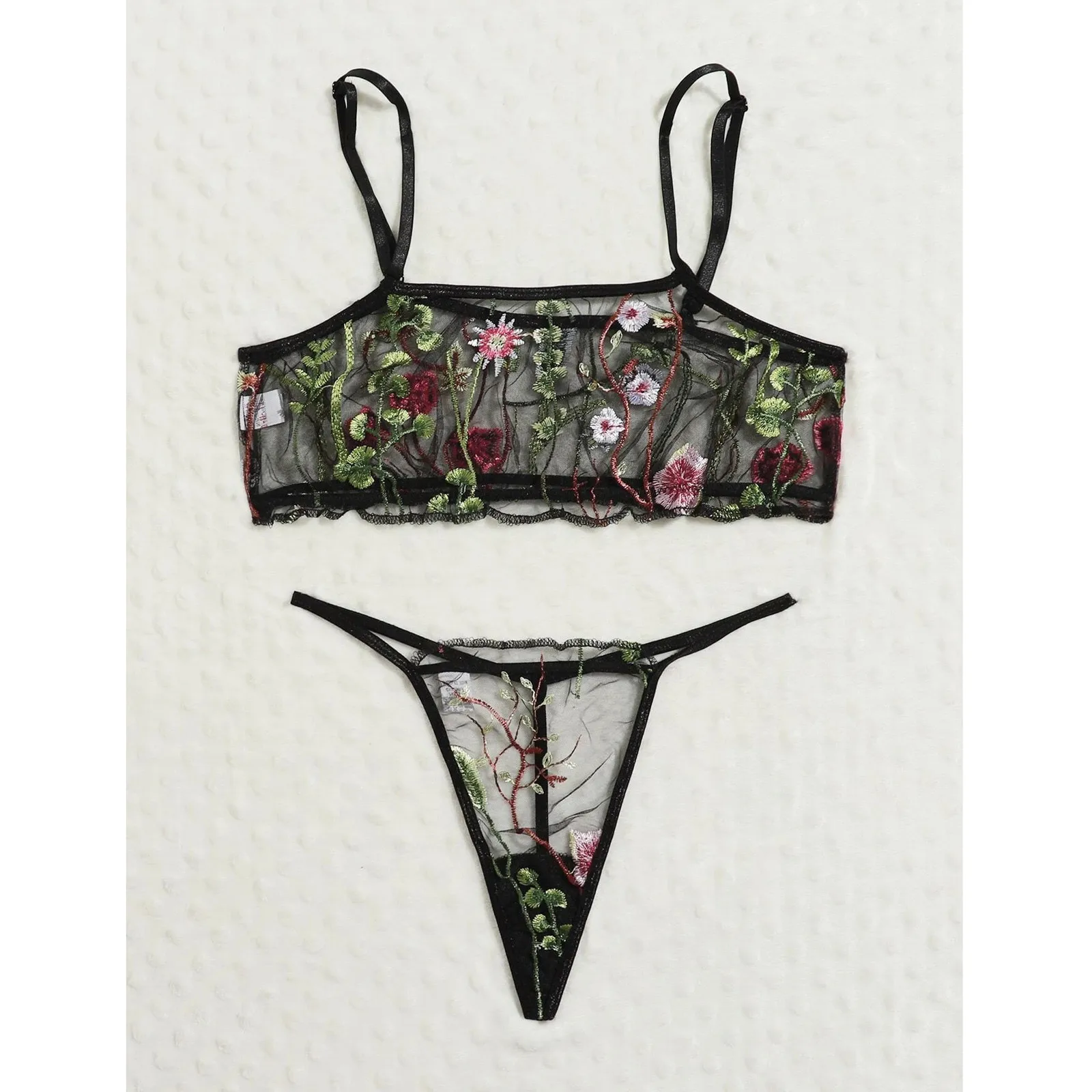 Женское кружевное нижнее белье с цветочной вышивкой, соблазнительно...