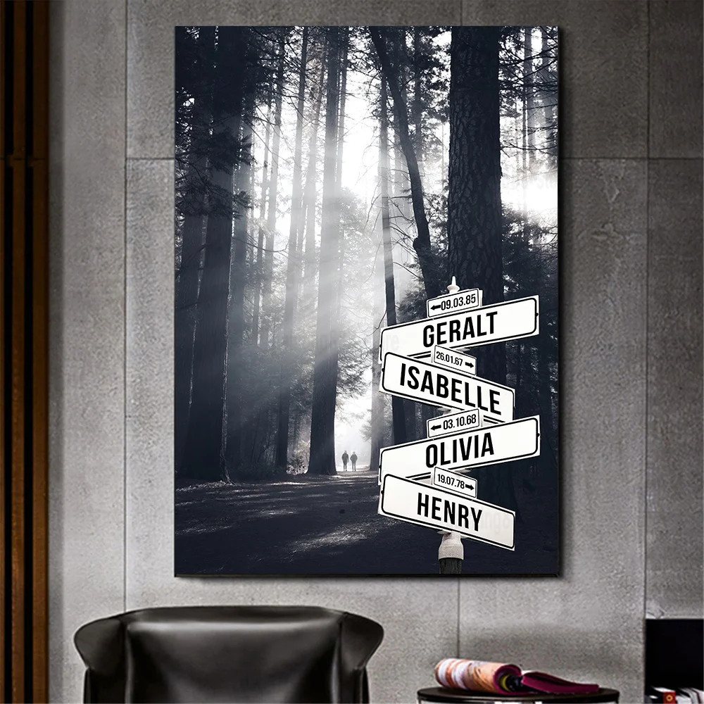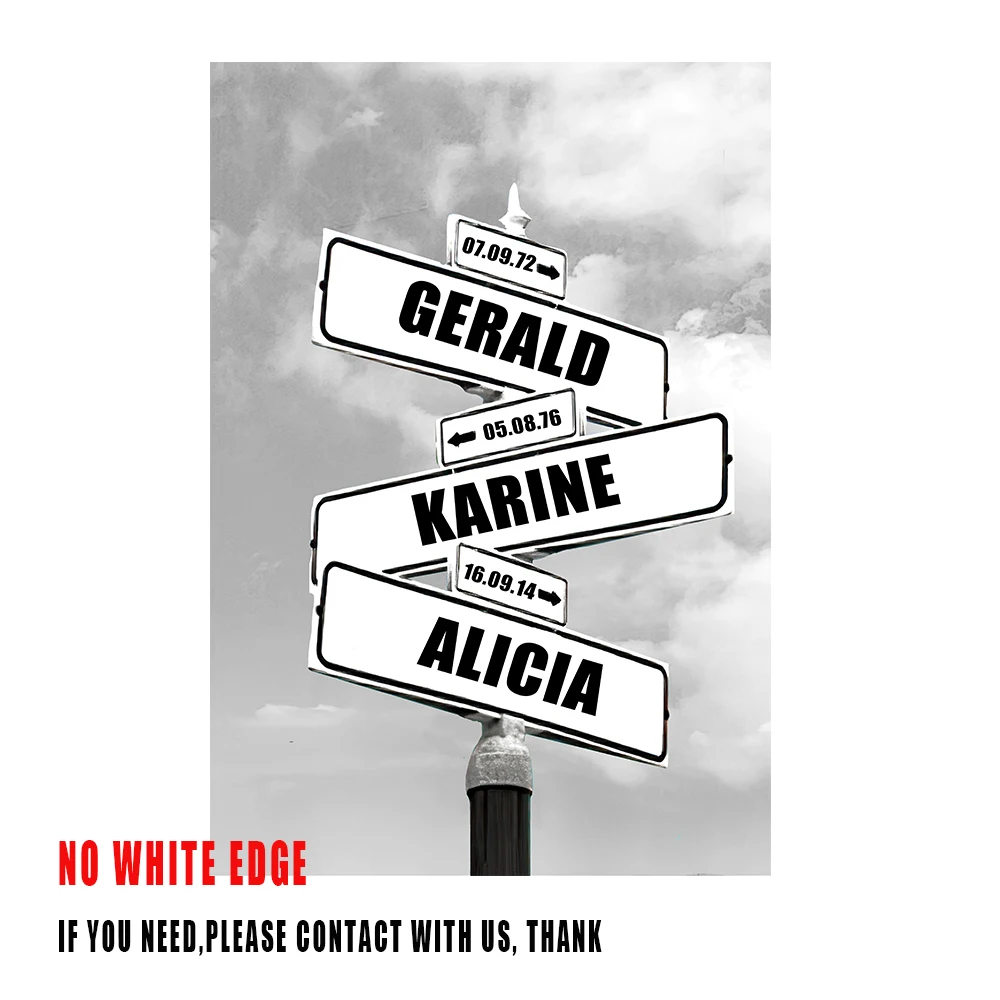 Персонализированный пересечение уличный знак 2-5 именадата Холст Картина настенное Искусство Пользовательские Подарки Для Семьи уличный знак домашний декор