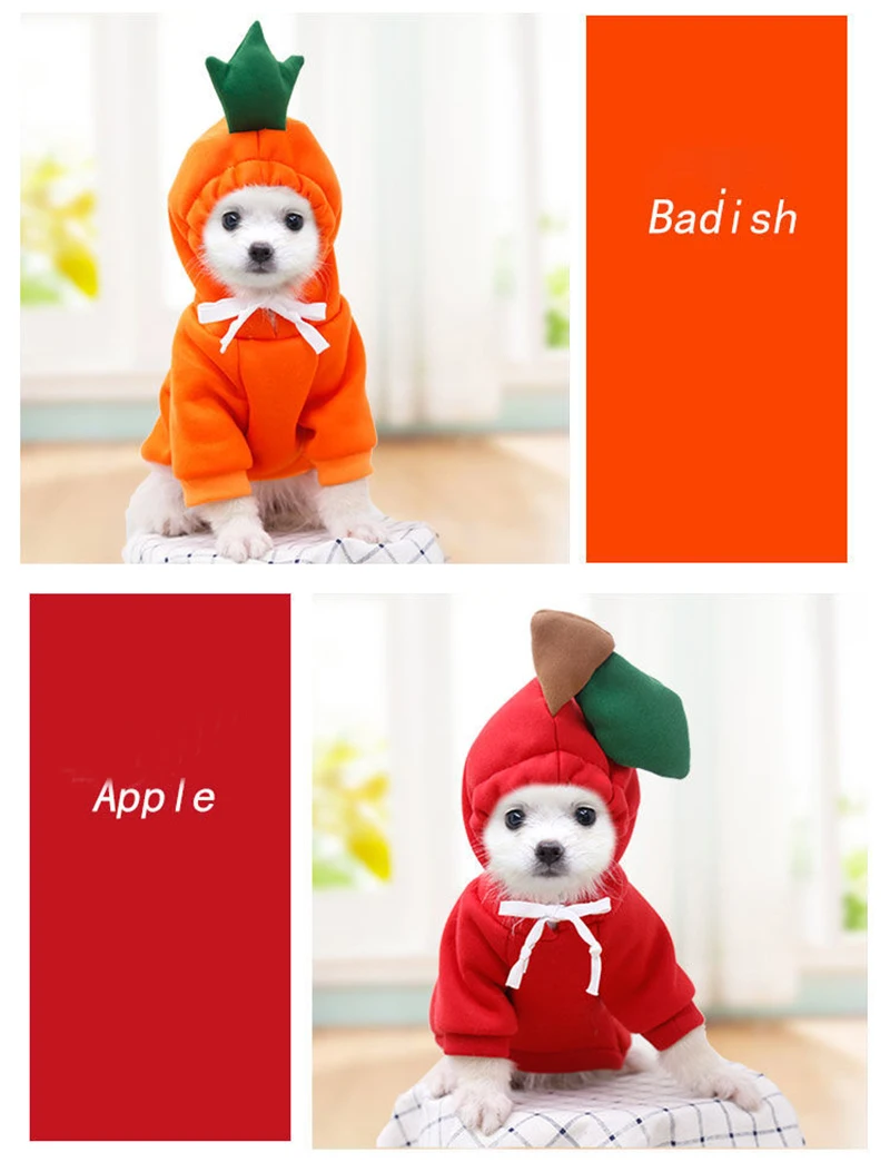 Одежда для домашних животных, свитшот с капюшоном для собак, теплое пальто с фруктами, свитер для кошек, костюм для холодной погоды для щенков, одежда для маленьких, средних и больших собак