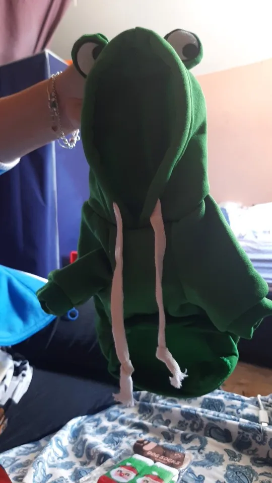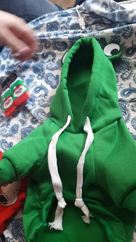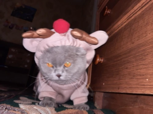 Хорошее качество толстовки. На британского кота весом 9кг размер L идеально. В лапках есть немного места и по спинке ровно до хвоста. В обхвате пузика ровно под объем кота. Кот недоволен обновкой. Но вскоре начал бегать в ней. Только вот капюшон придется подвернуть иначе падает и закрывает всю мордочку и естественно обзор пушистому