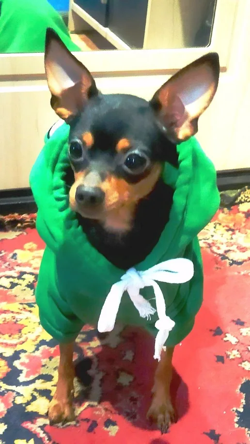 Хорошая кофточка,на 3 месячного щенка той терьера 3 блльшевата,останется на вырост.