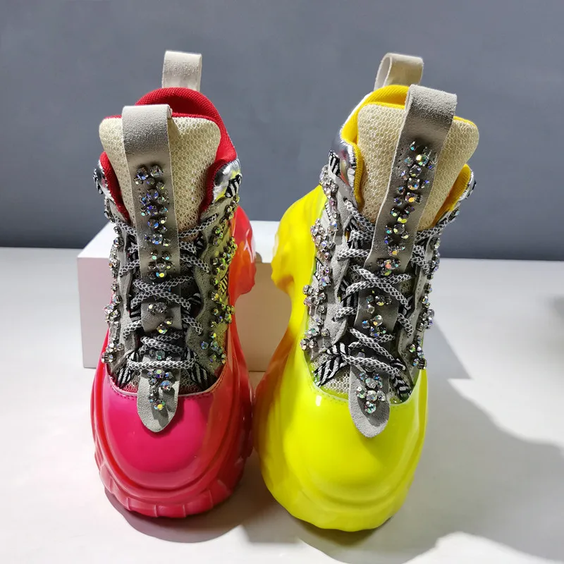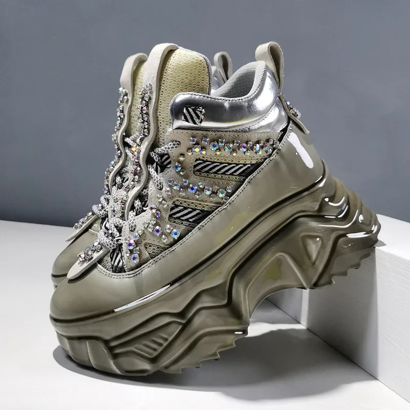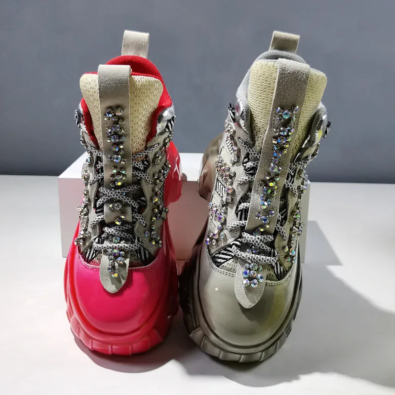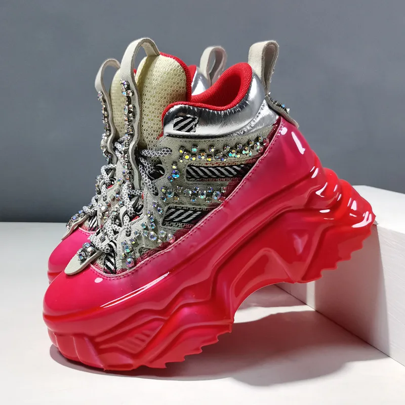 Женские кроссовки со шнуровкой, высокие, на плоской платформе, повседневные, дышащие, на толстой подошве