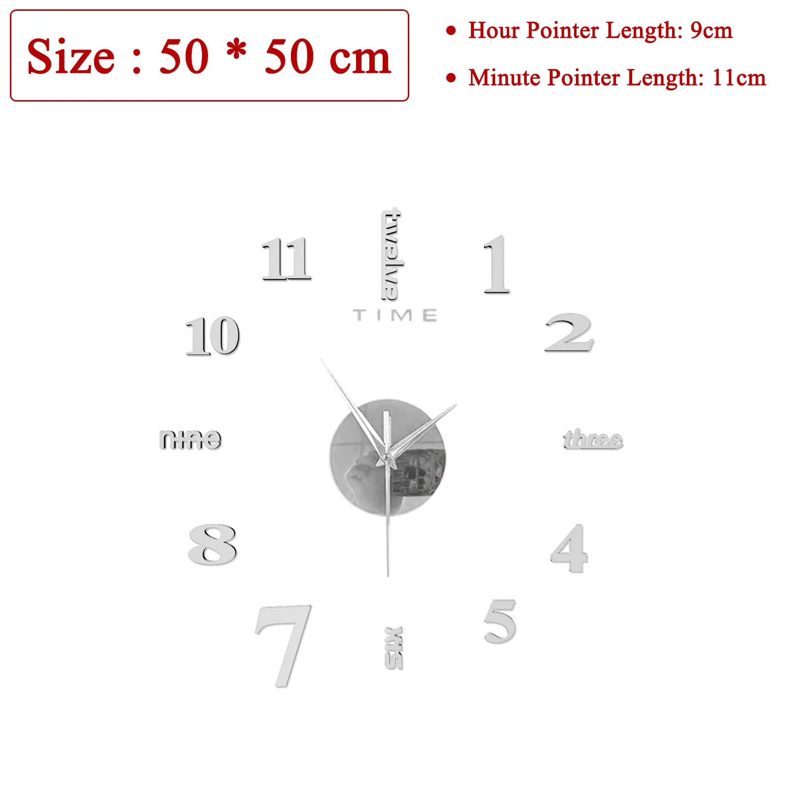 Home Office Decor Clock3D Mirror Surface Sticker