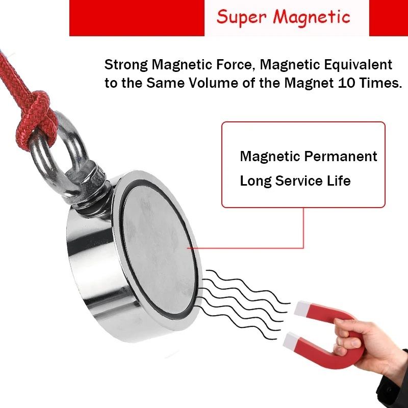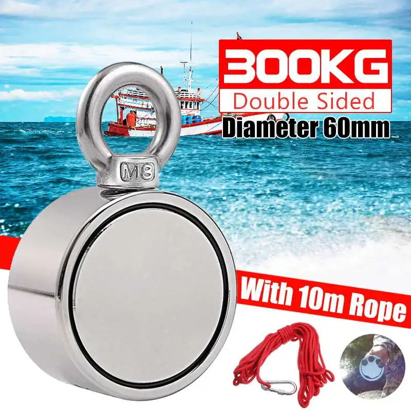 Двухсторонний мощный круглый неодимовый магнит, 300 кг, диаметр 60 мм, магнит для поиска крючка, морское рыболовное оборудование, держатель с кольцом, Веревка 10 м