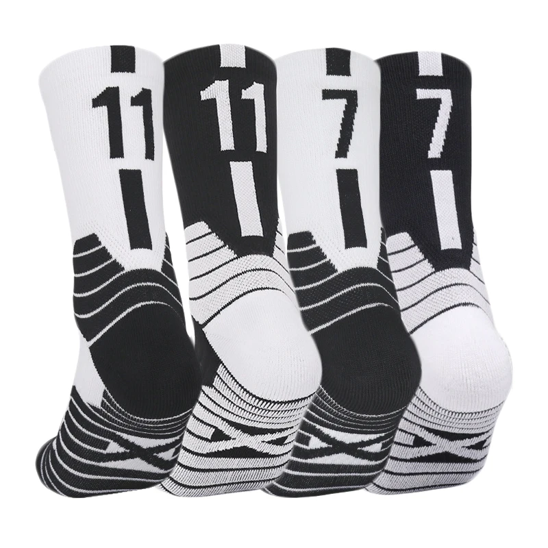 Категория продукта: спортивные носкиФункция: дышащий, впитывающий пот, антифрикционныйВысота трубки: средняя трубкаРазмер: взрослый размер (подходит для размера обуви 38-44), детский размер (подходит для размера обуви 33-37)Возрастная Классификация продукта: носки для взрослыхПрименимый Пол: нейтральный/мужской и женскийНазвание ткани: имитация нейлонаОсновной состав ткани: нейлон/нейлон (70% Содержание)Стиль: спортивныйПроцесс: жаккардПодходящий сезон: весна, осень и зимаРисунок: подбор цвета, номерТолщина: толстаяФорма упаковки: сумкаКоличество упаковки: 1 пара носковАртикул: JCB5023 баскетбольные Носки