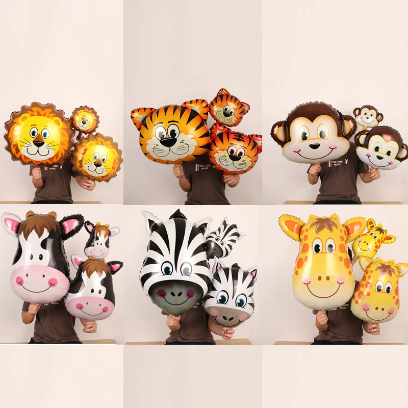 1 шт., большие воздушные шарики в форме животных, тигра, Льва, зебры, коровы, обезьяны, алюминиевая фольга, Гелиевый шар, джунгли, вечерние товары для дня рождения ребенка