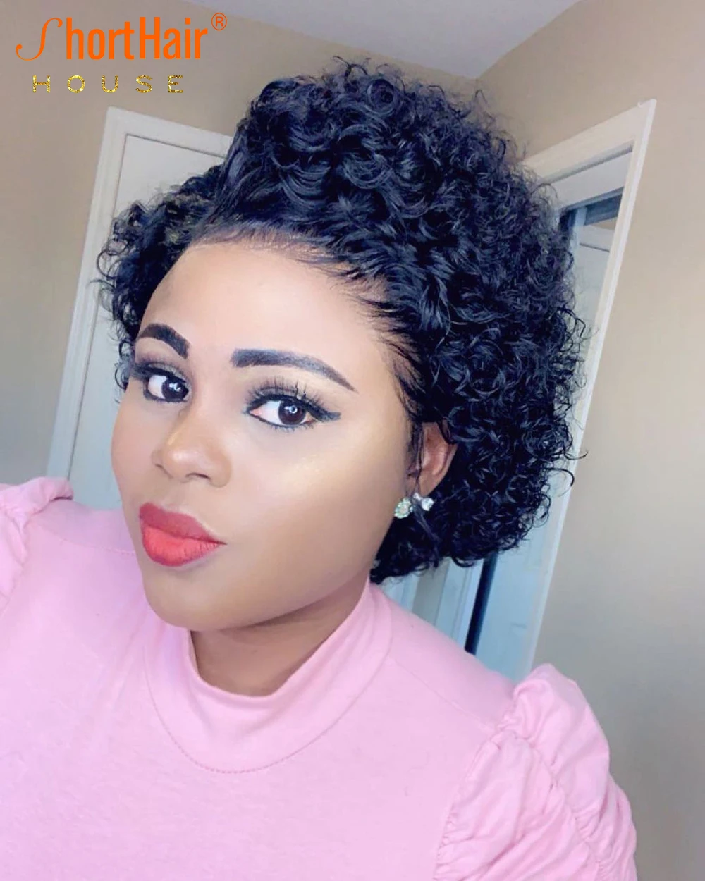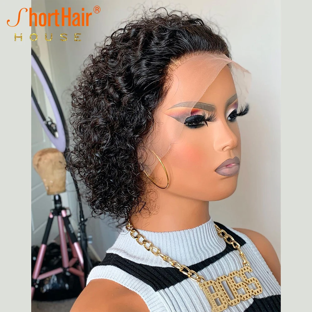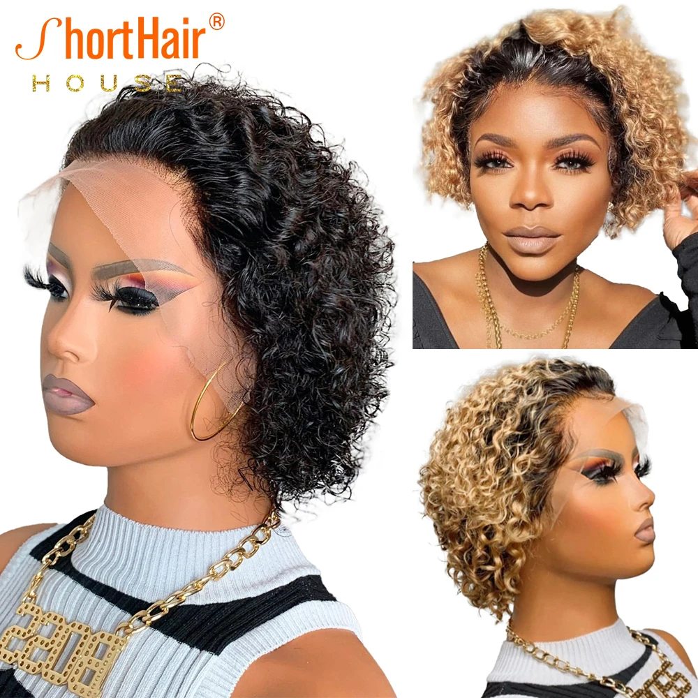 Парик с кружевной передней частью 1b 27, медовый блонд, стрижка Пикси, парики из натуральных волос для чернокожих женщин, короткий, кудрявый, натуральный, бразильский, без клея