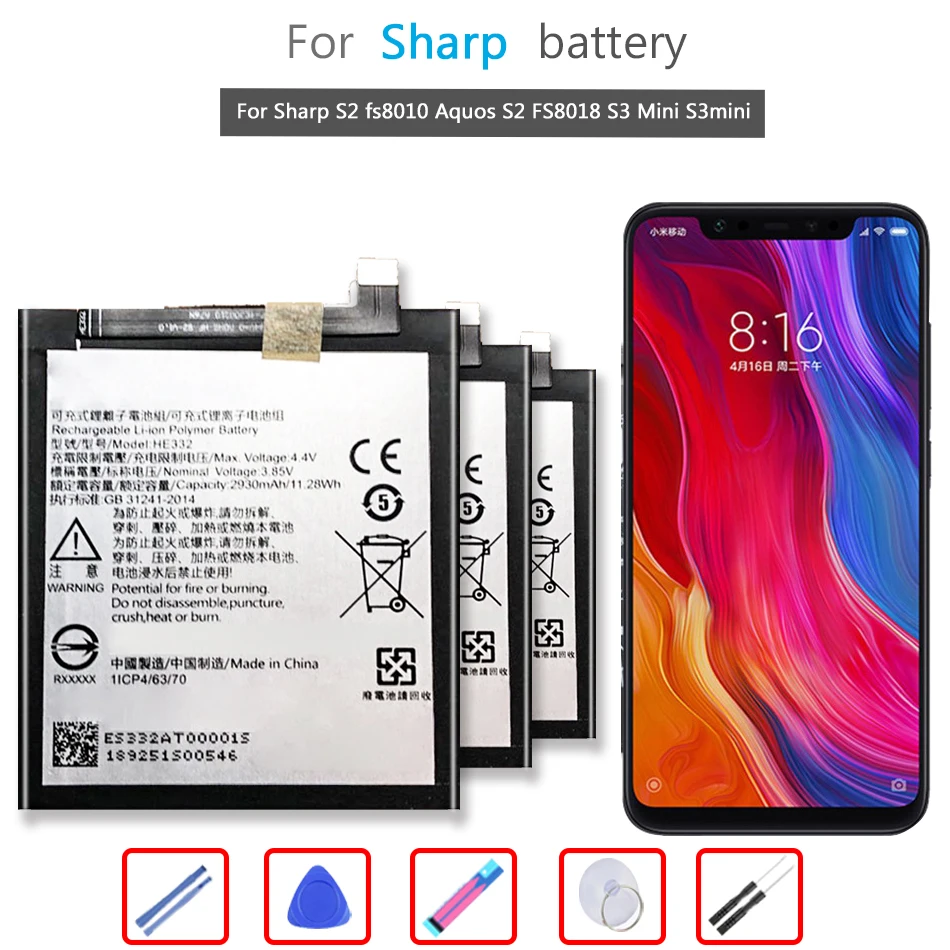 Аккумулятор 2930 мА ч HE332 для Sharp S2 fs8010 Aquos S2 FS8018 S3 Mini S3mini мобильный телефон, литий-ионный