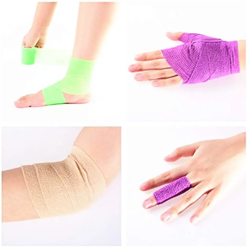 Эта повязка представляет собой не липкую ленту, которая прилипает сама по себе, для ее удержания не нужны булавки или другие ленты. Он идеально подходит для компрессии поврежденных мышц, так как не прилипает к коже или волосам.