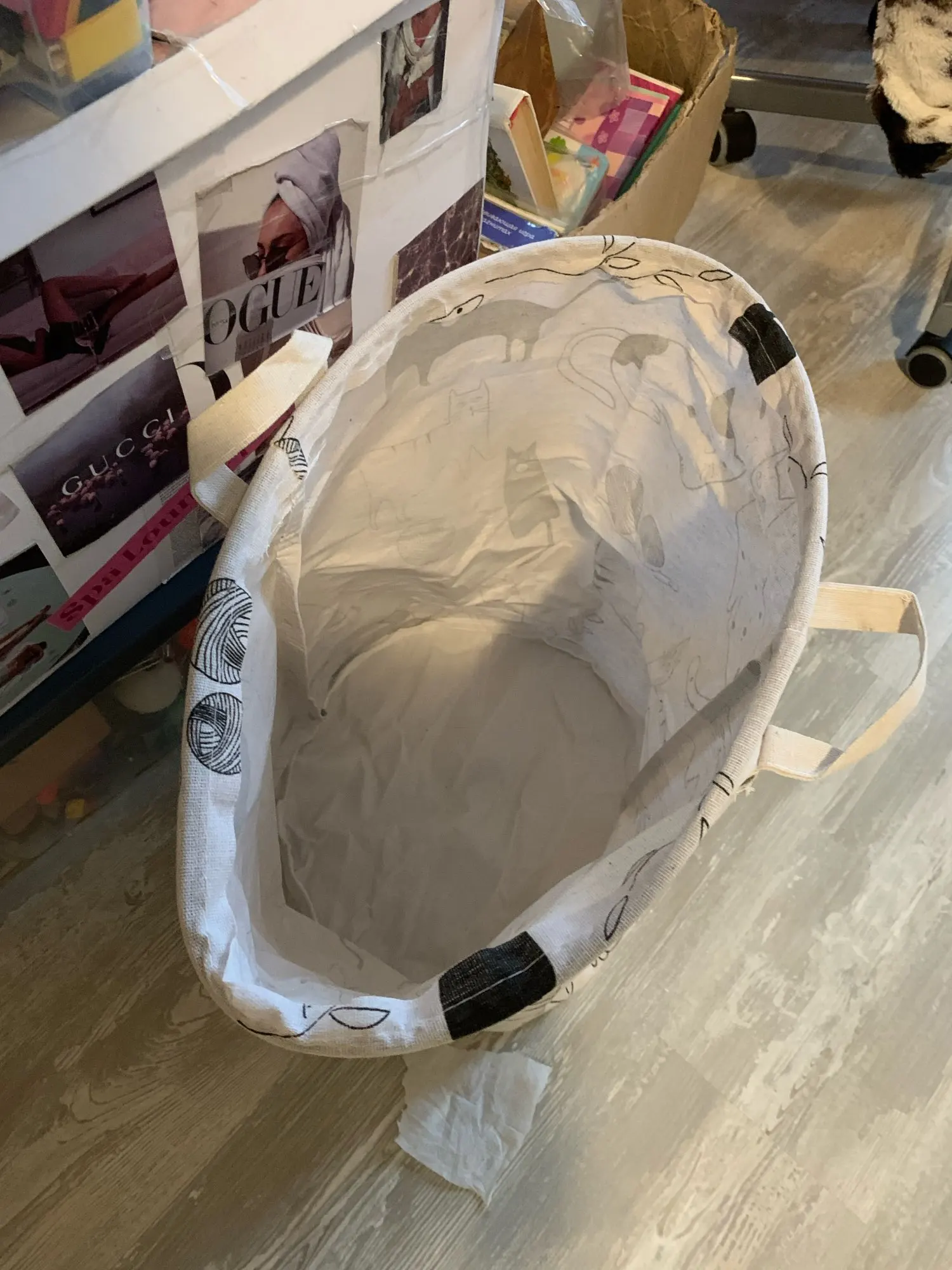 Корзина неплохая для своей стоимости. Думала, она будет более твердая, но в целом вес белья держит и не проминается. Материал - плотная синтетическая ткань, даже больше похоже на клеенку. Рисунок на ткани соответствует фото.