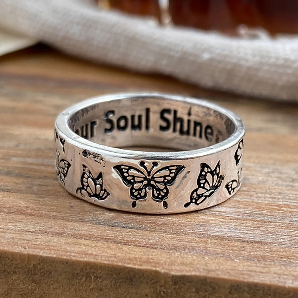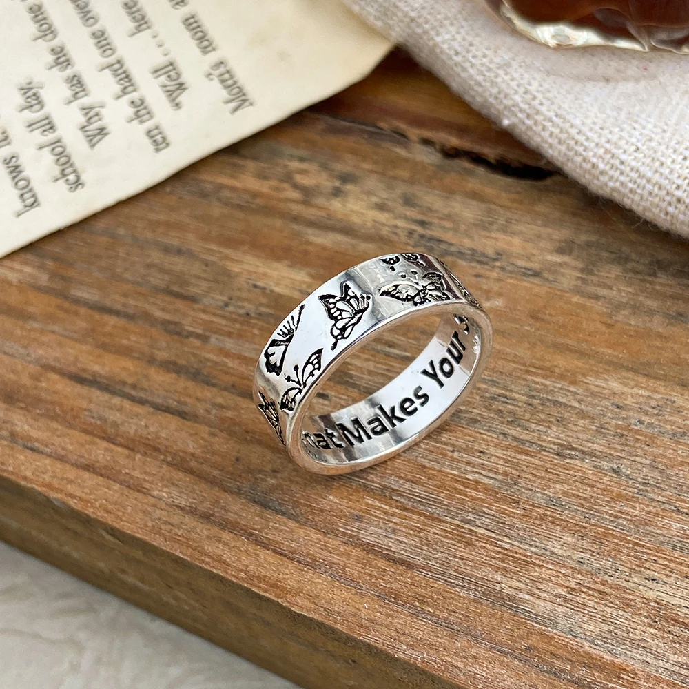 Винтажное простое резное кольцо с цветами для женщин и мужчин, богемное изящное кольцо с буквами-бабочками ручной работы, подарки для женщин