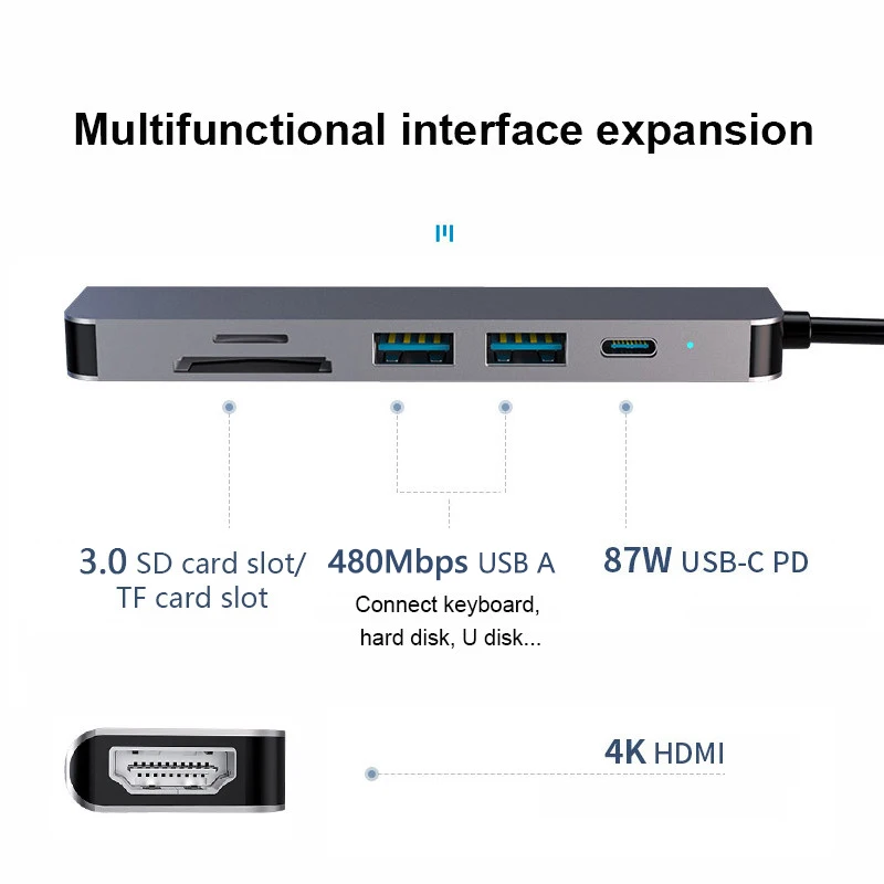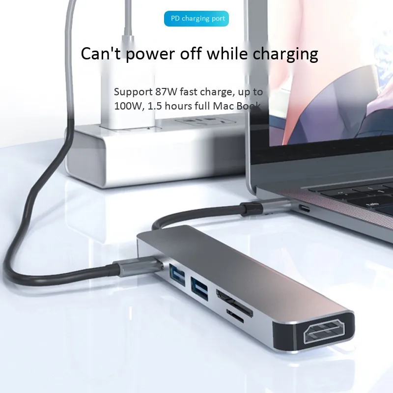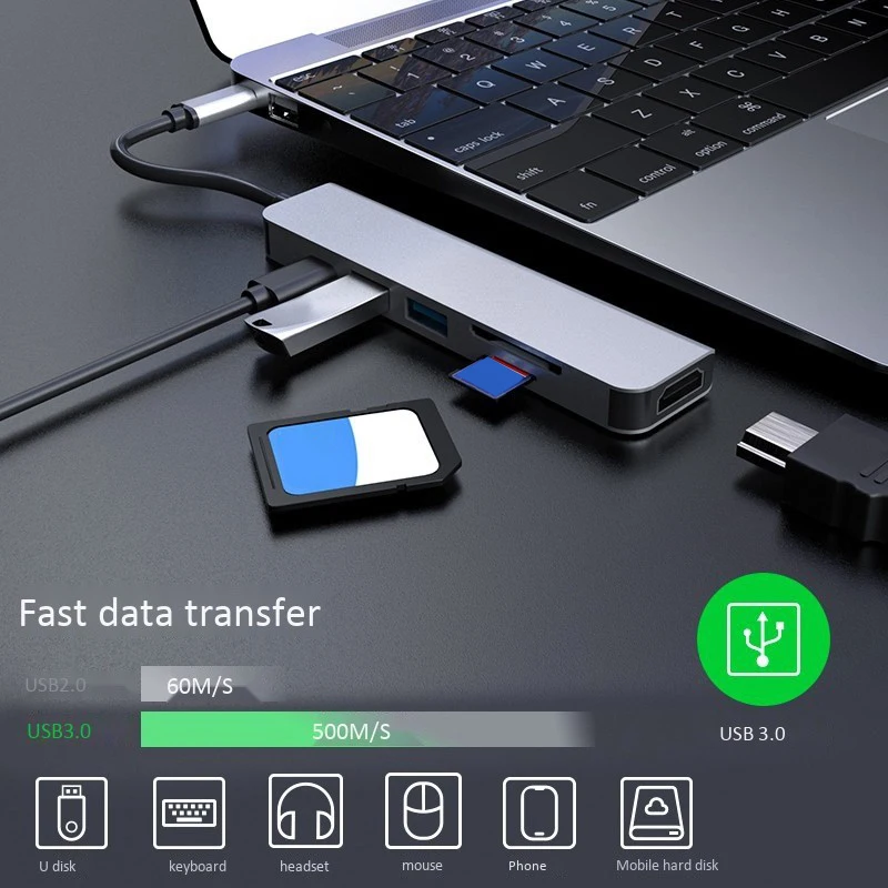 USB 3.0 Type C Hub адаптер 6 в 1, Двойная док-станция USB для MacBook Pro с 4K 30 Гц, Высокоскоростная зарядка PD, кардридер, сплиттер