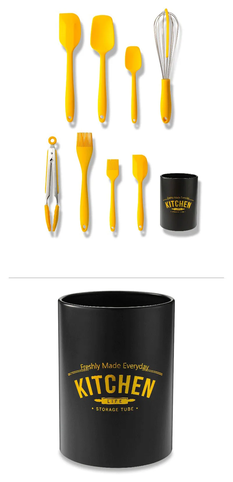 Набор силиконовых кулинарных инструментов, 9 шт., антипригарная кухонная утварь, лопатка, щипцы, щетка для супа ложка-Лопатка, масла, с коробкой для хранения