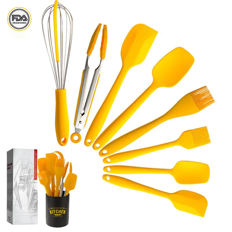 Желтая силиконовая посуда, термостойкий шпатель, масляная щетка, ве...