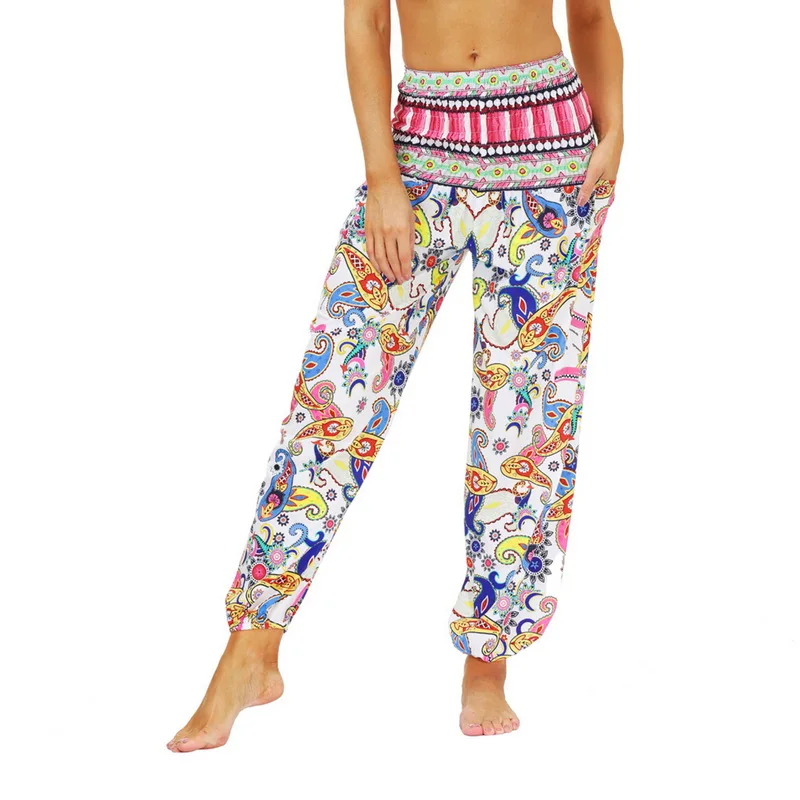 Особенности:Посылка включает в себя: Женские Штаны Для ЙогиРазмер: FМатериал: полиэстерТип: принтШаровары, женские повседневные летние свободные Штаны, женские мешковатые Штаны в стиле бохо с принтом Аладдина, повседневные модные Штаны для йоги 2021.