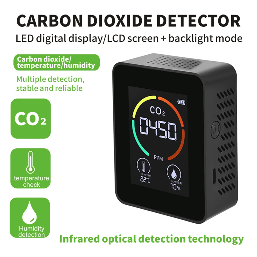 Портативный детектор углекислого газа 3 в 1 Цифровой Измеритель температуры и влажности CO2 с ЖК-дисплеем с подсветкой