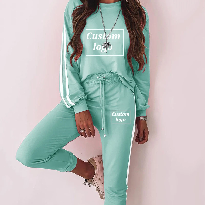 Женский спортивный костюм из 2 предметов, свободная толстовка с индивидуальным логотипом и штаны, спортивная одежда для бега, весна-лето