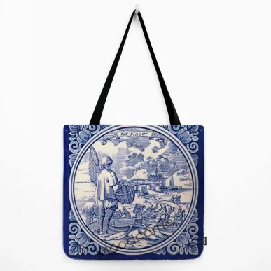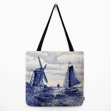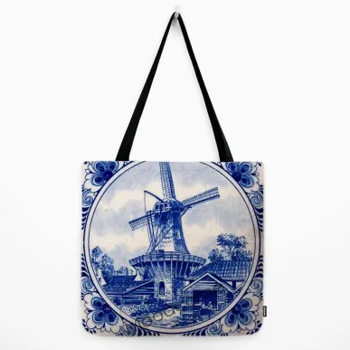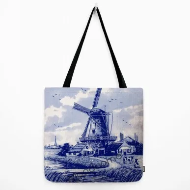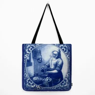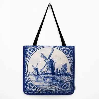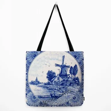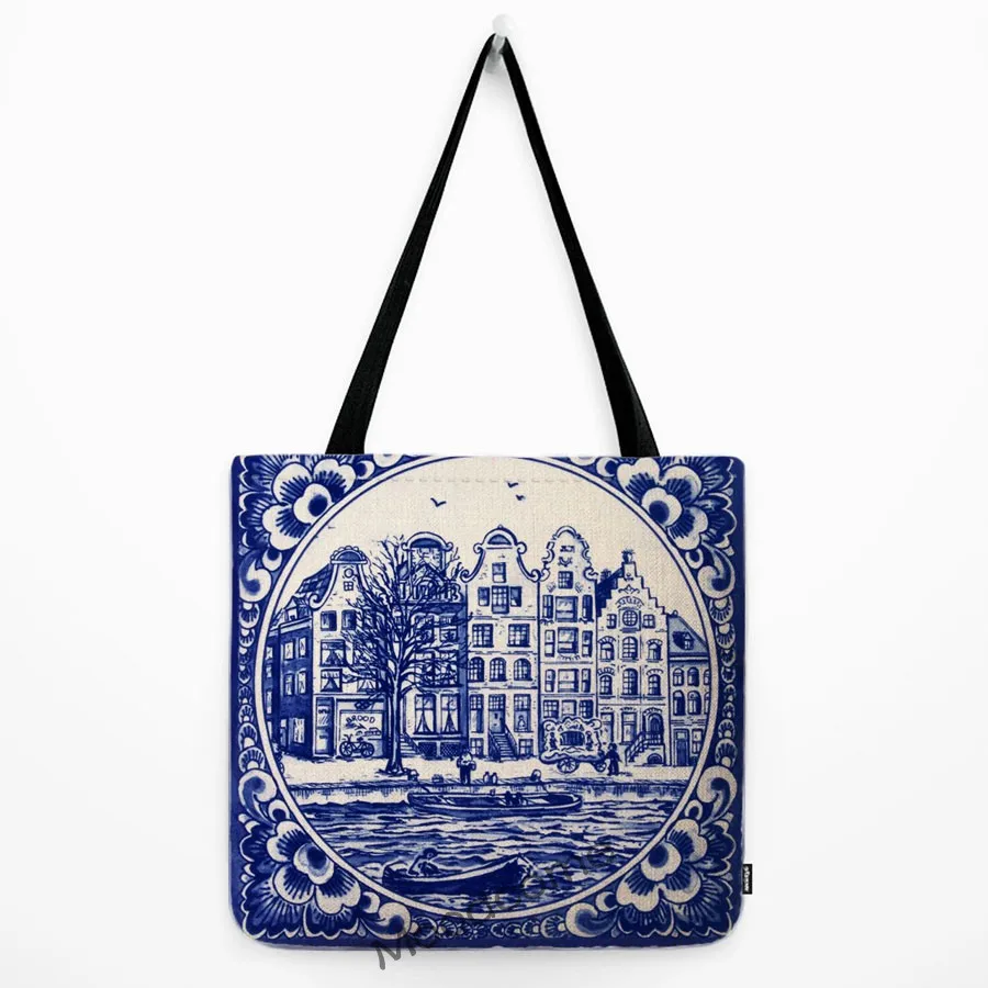 Традиционный сувенир Голландии Delft, синий сувенир с художественным рисунком, сумка-тоут из хлопка и льна, сумка через плечо