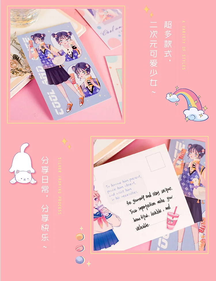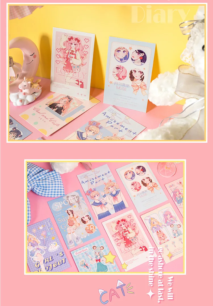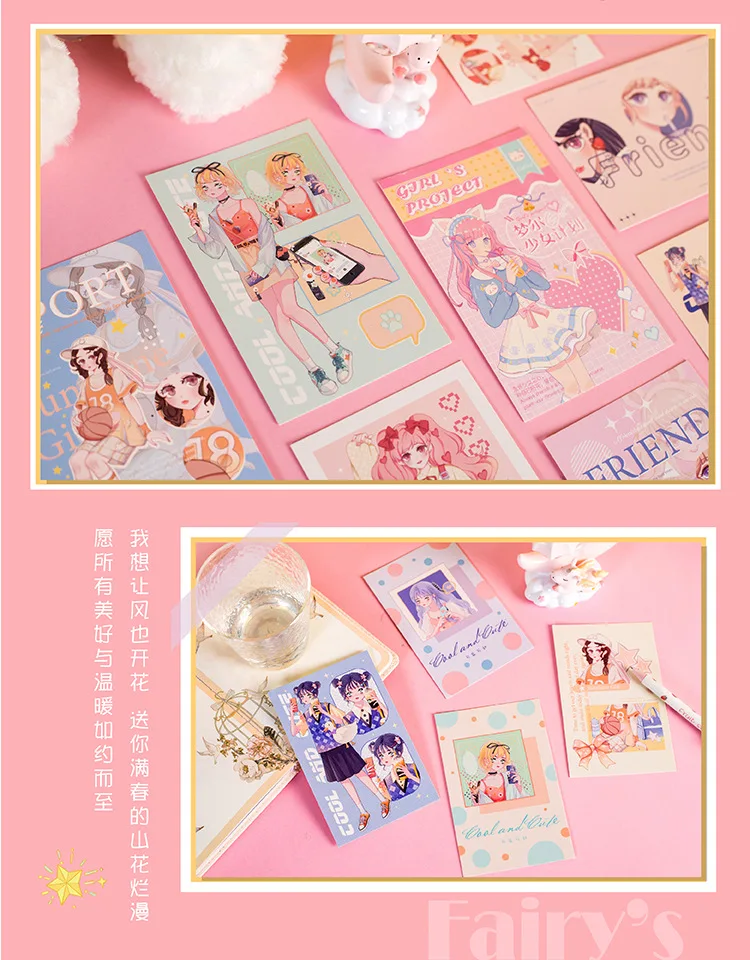 30 шт.компл. открытка Проект мечты девочки, сделай сам, мультяшная девочка, поздравительные открытки, сообщение, благословение, открытка, подарок, канцелярские товары