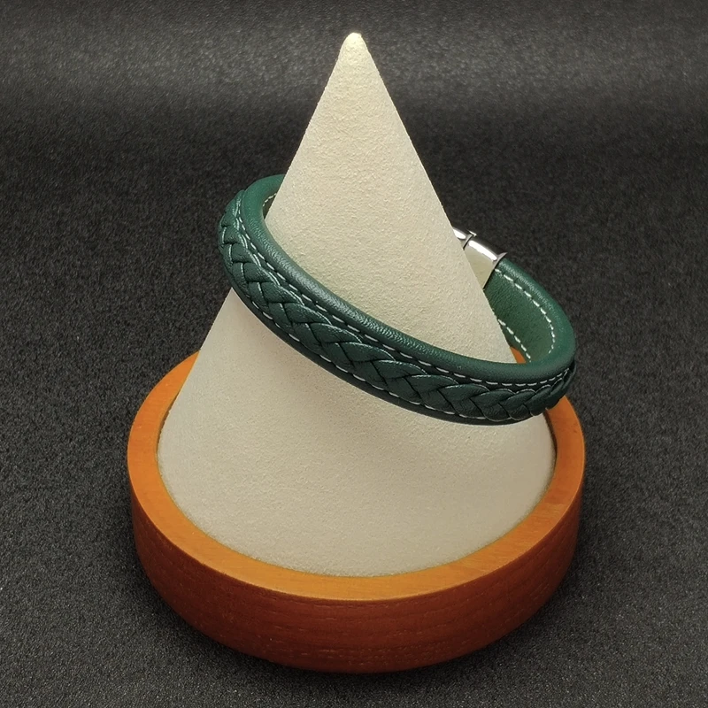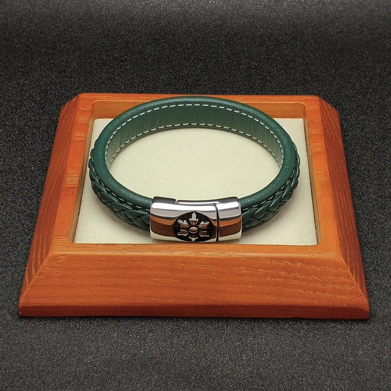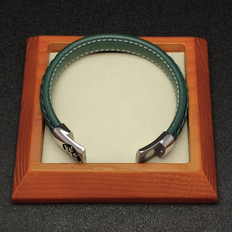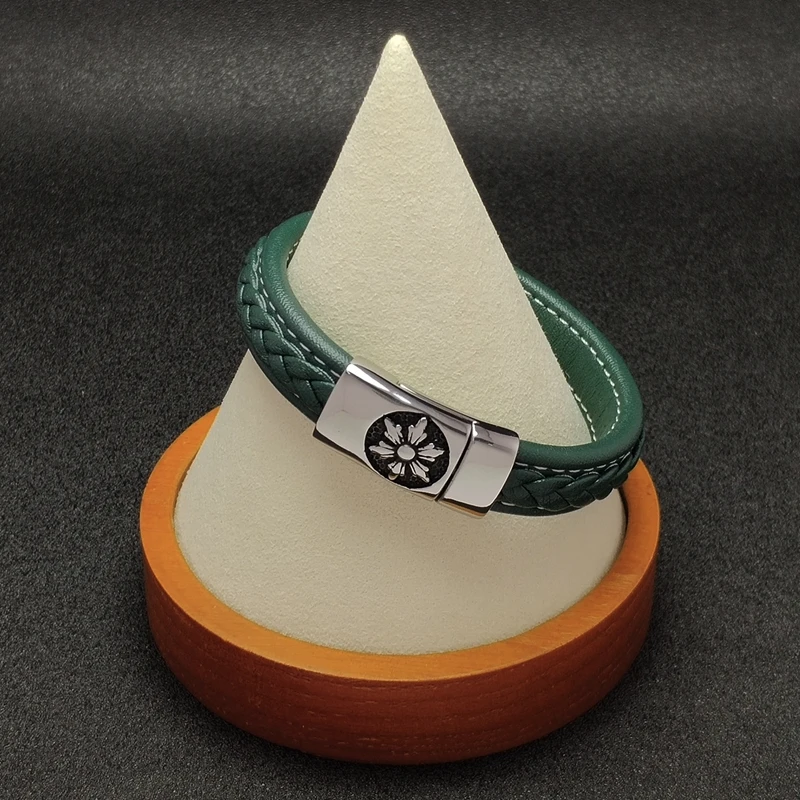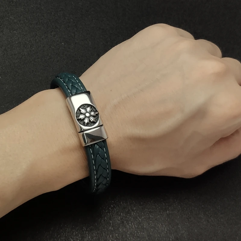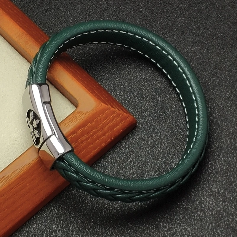 Модный мужской браслет, зеленый плетеный кожаный браслет, браслет из нержавеющей стали с магнитной пряжкой, мужской браслет, модное ювелирное изделие на запястье в стиле панк SY075AG