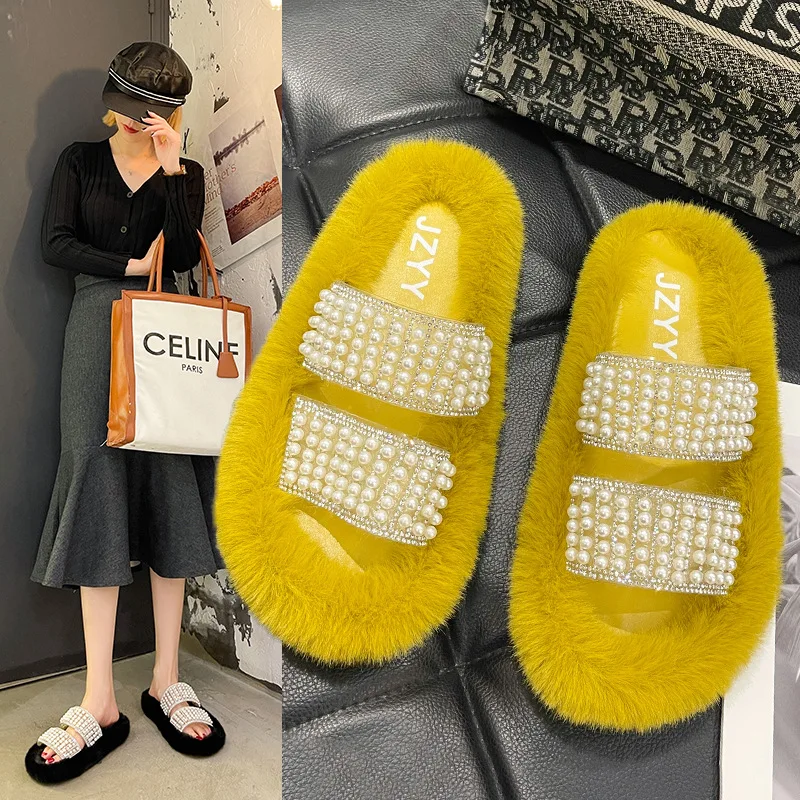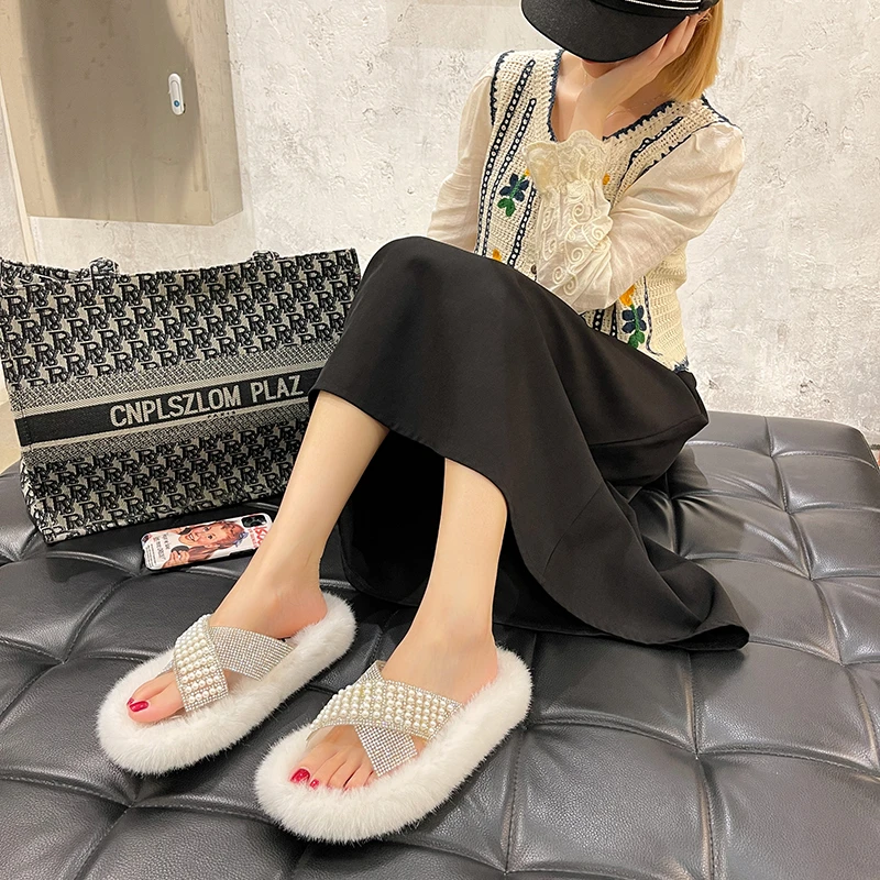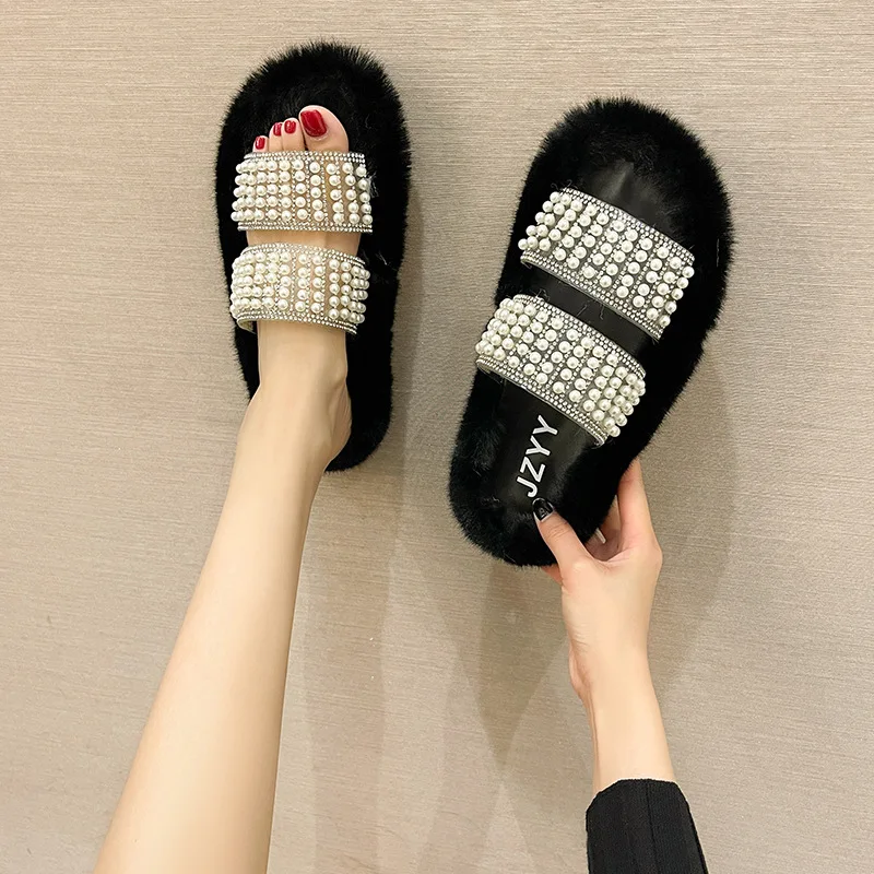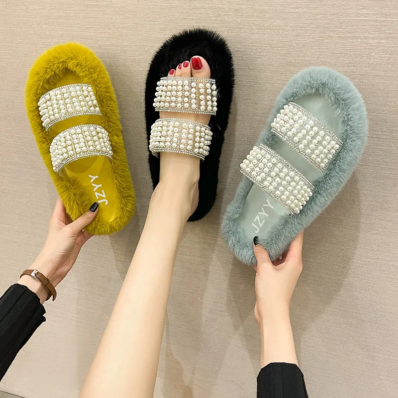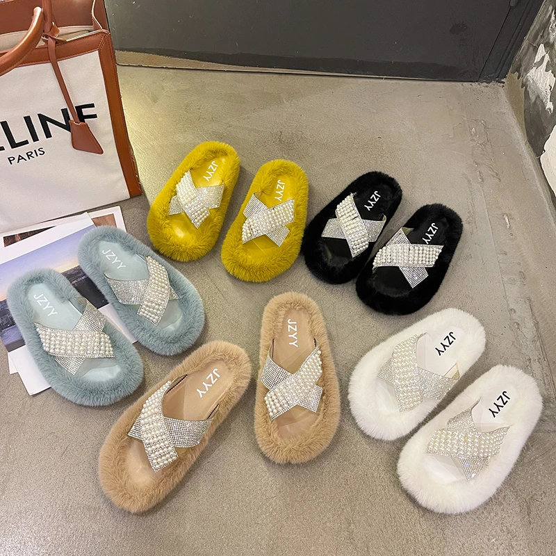 2021 новые модные плюшевые тапочки для женщин, высококачественные роскошные и удобные меховые сланцы, летние домашние сандалии, оптовая продажа женской обуви
