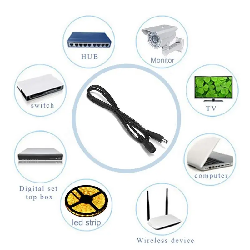 100% абсолютно новый разъем питания постоянного тока удлинитель провода Тип кабеля: 22AWG 80 °C 300V Внешний диаметр: 5,5 мм Внутренний диаметр: 2,1 мм Материал проводника: Луженая медь Изоляционный материал: ПВХ Длина кабеля: 0,5 м/1 м/1,5 м/2 м/2,5 m / 3m / 5m опциональноПосылка включает в себя: