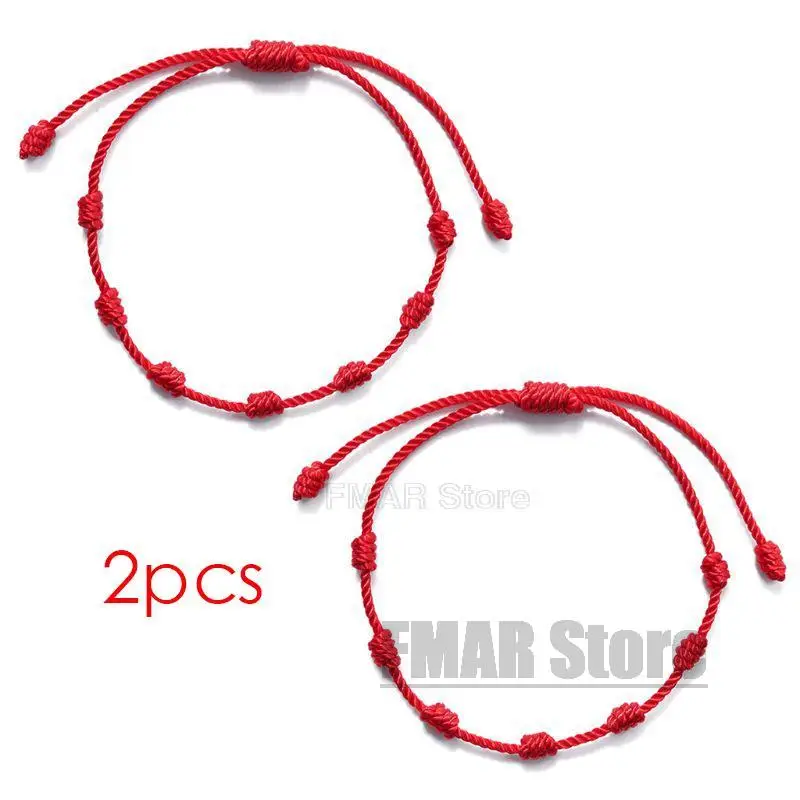2 шт., красный браслет с 7 узлами для защиты глаз, удачи, амулет для успеха и процветания, браслет дружбы, подарок
