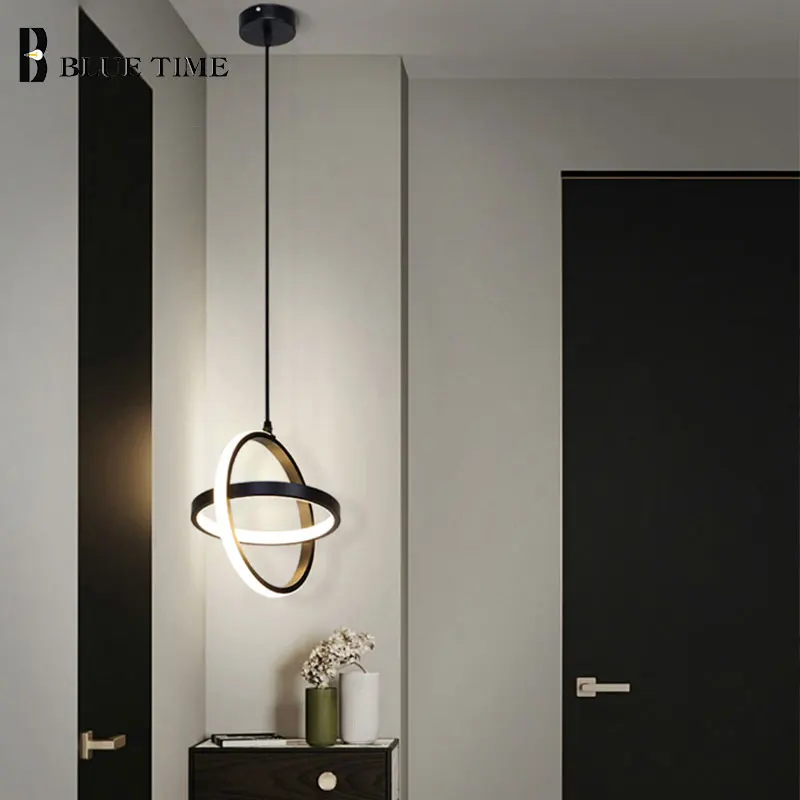 Простая современная светодиодная люстра, черно-белая Подвесная лампа, освещение для гостиной, кухни, столовой, спальни, прикроватный столик