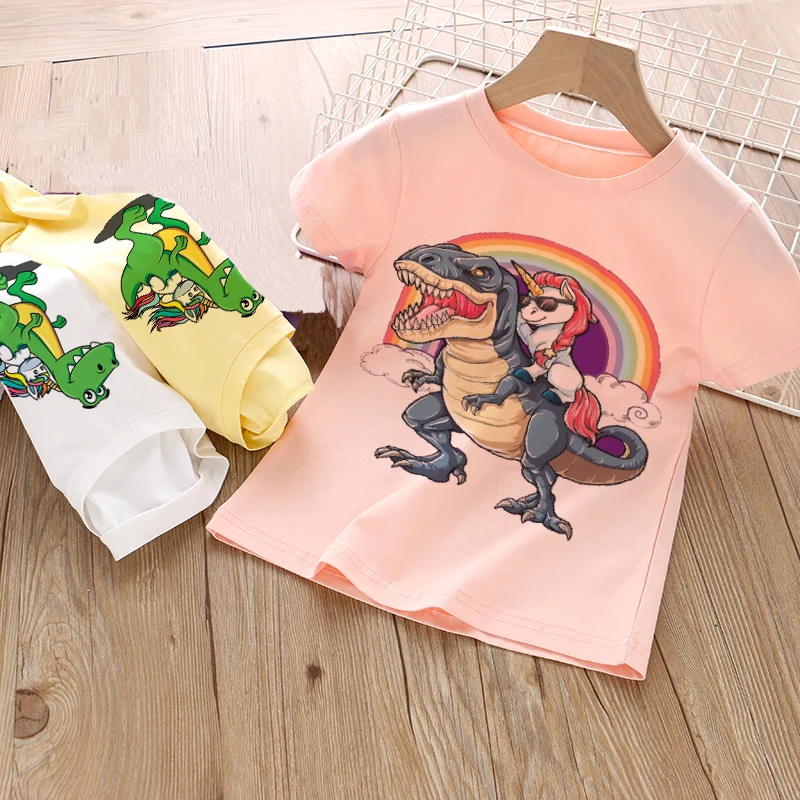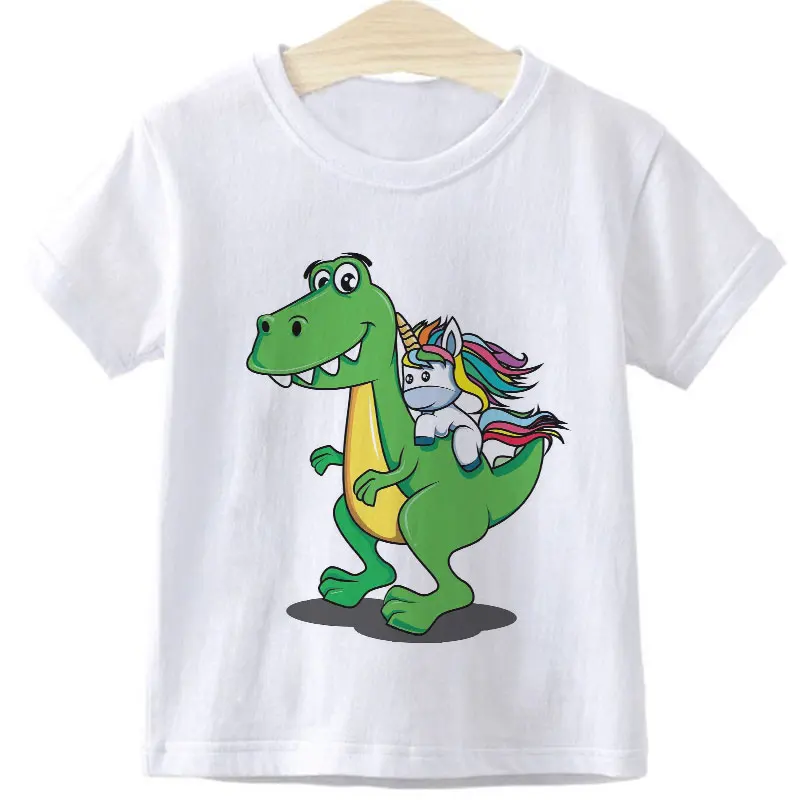 Детская летняя одежда для девочек с динозаврами и единорогом 2021, мультяшный динозавр, графическая футболка для мальчиков, детские топы, одежда из аниме