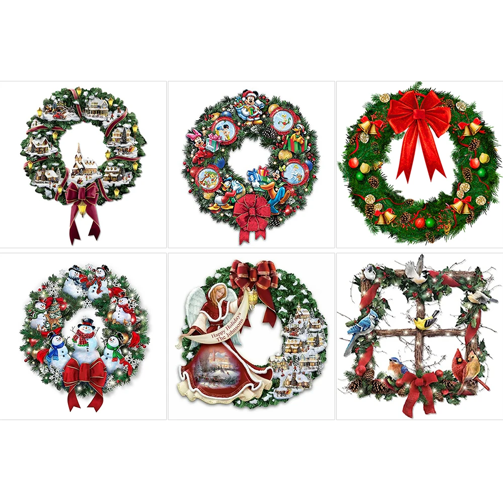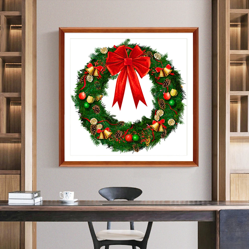 Алмазная 5D картина сделай сам, праздничный венок, Круглая Мозаика для украшения дома, рождественские подарки