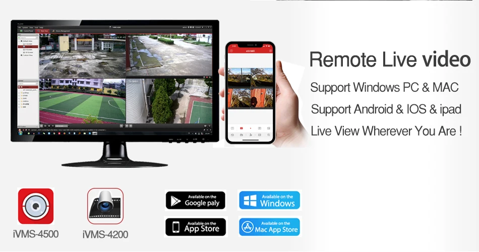 Также предоставляет бесплатные приложения для смартфонов (Android и iPhone) для удаленного просмотра из любого места.