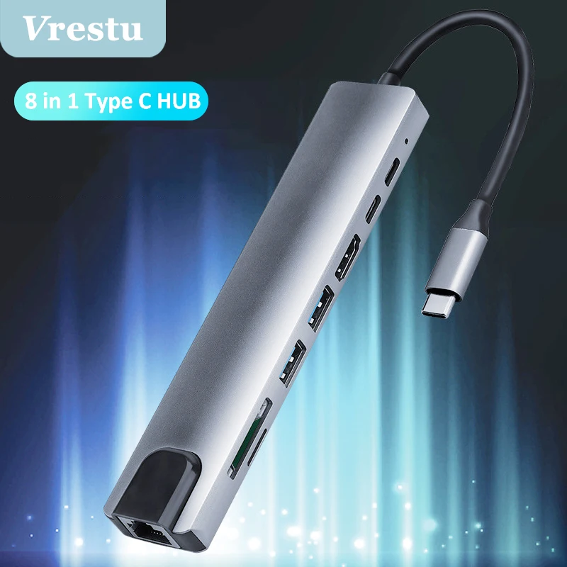 8 в 1 Type-c 3,0 до 4K Hdmi-совместимый Rj45 Ssd Tf кардридер Pd Бы...